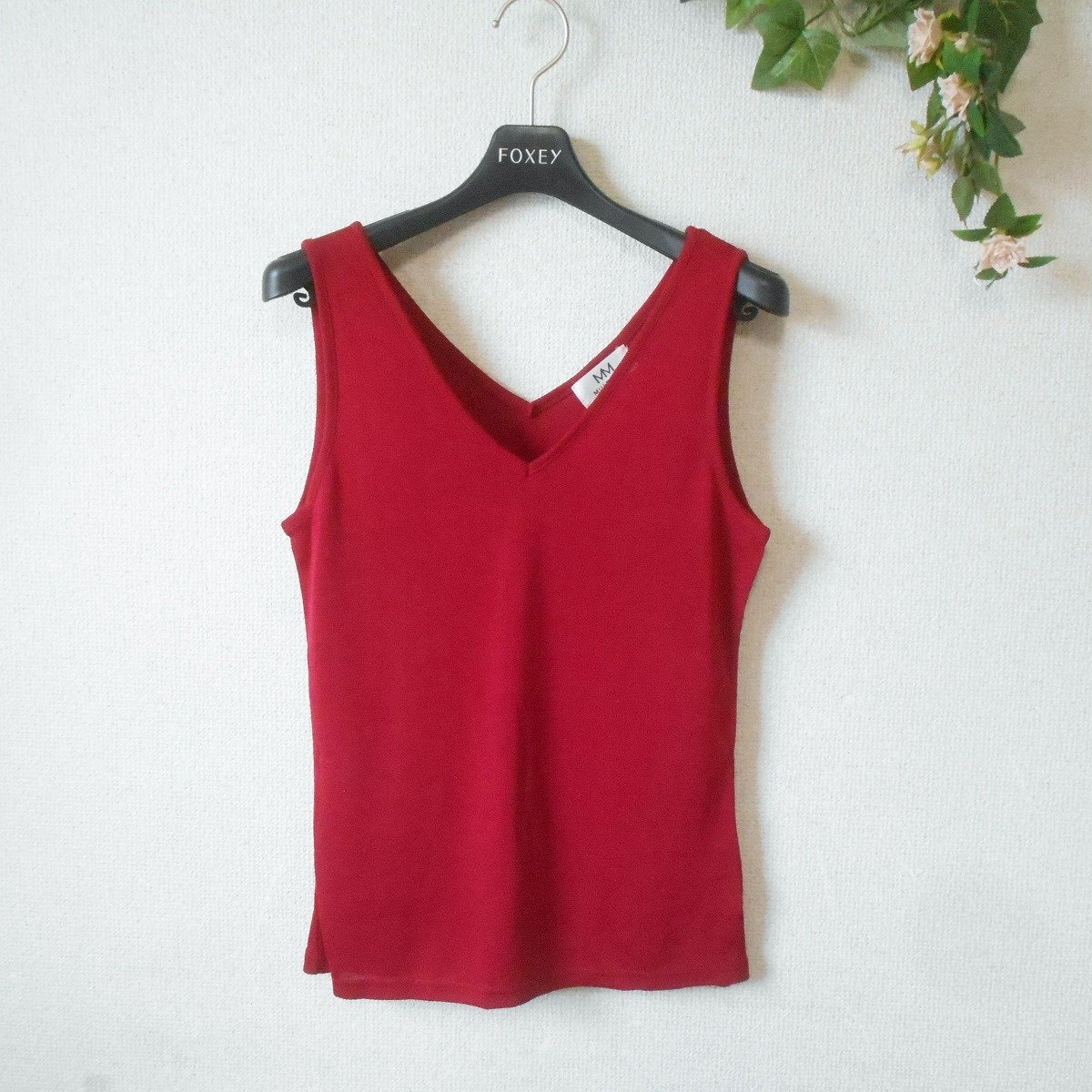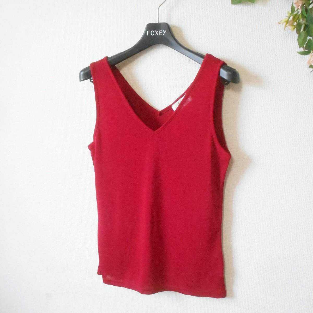 【ポイント】オンワード樫山、マルチミックスのレディース用ノースリーブニットになります。お色は濃い赤系で薄手の夏向きです。