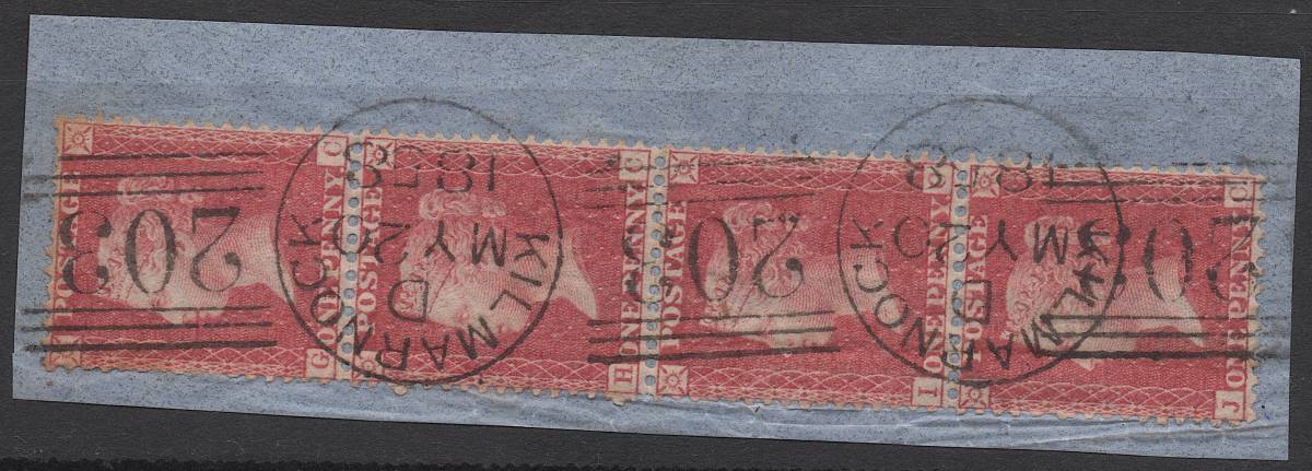 ****クラッシックイギリス切手・ヴィクトリア女王1855年ペニーレッド「スコット#16」4列、使用済み