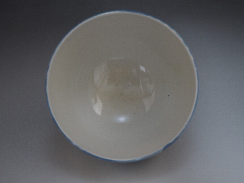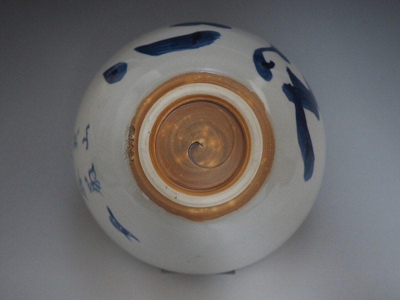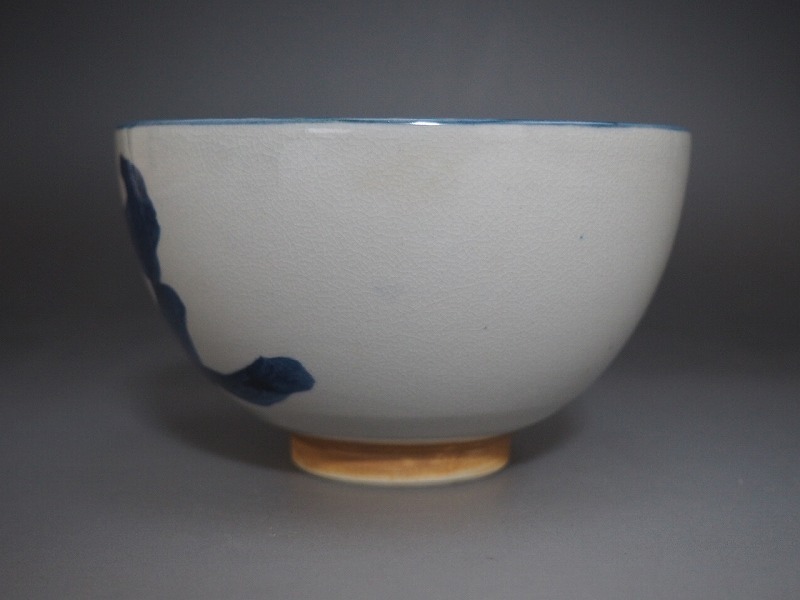 A2893 清水焼 染付茶碗 ☆ 茶道具 抹茶器 茶器 抹茶道具 茶懐石 茶事 茶の湯 茶碗 抹茶碗 京焼 仁清 陶器 在銘 陶印 窯印 美品 良品 無傷 | ||