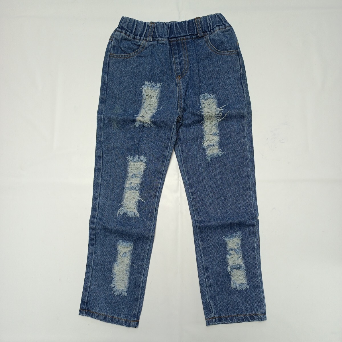 【未使用】120 子供服 キッズ 男の子 女の子 長ズボン ダメージ パンツ イージーパンツ シンプル カジュアル 無地 イベント ダンス ④