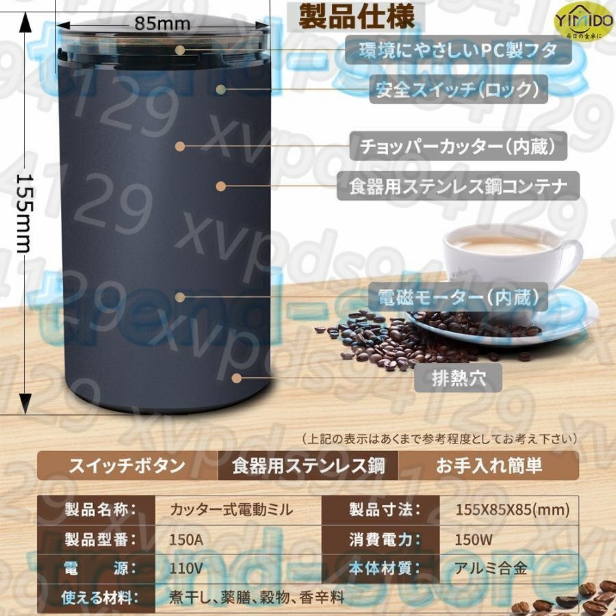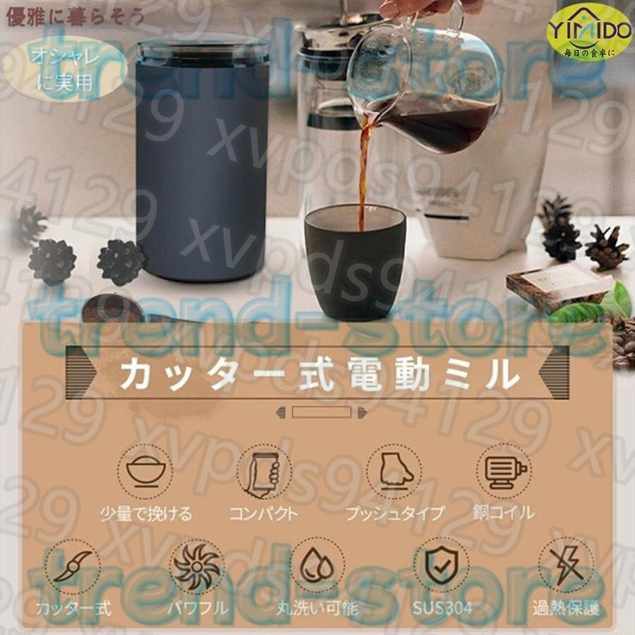 電動コーヒーミル ミル 電動ミル 丸洗い可 ステンレスカッター コーヒー豆 胡椒ミル お茶ミル ギフト ミルミキサー 粉末 掃除ブラシ付