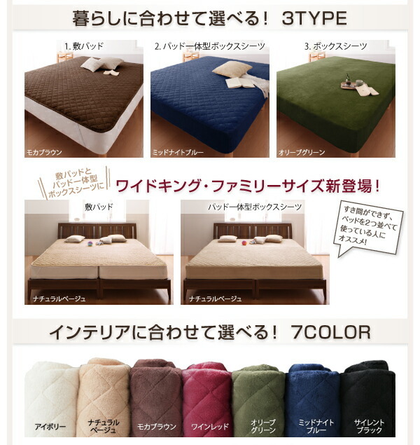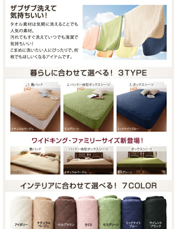 寝心地・カラー・タイプが選べる大きいサイズのパッド・シーツシリーズ敷きパッドコットン100%タオルワイドキング