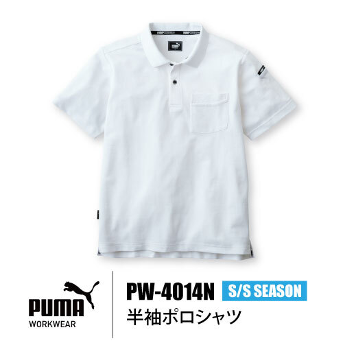 プーマ ワークウェア 春夏【 PW-4014N 】 作業ウェア PUMA 半袖ポロシャツ ■Mサイズ■ホワイト色 ≪ネコポスの場合1着まで可≫