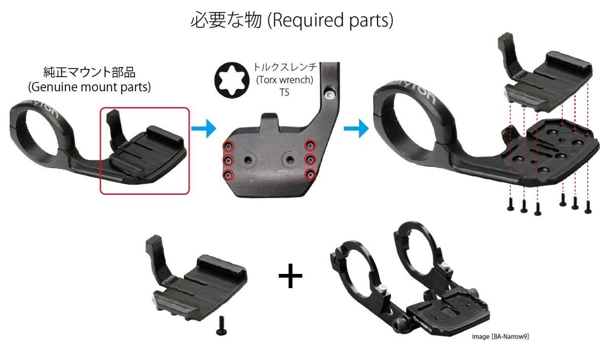 ※純正マウント装着のブラケットが必要です。工具はトルクス T5が必要です。
