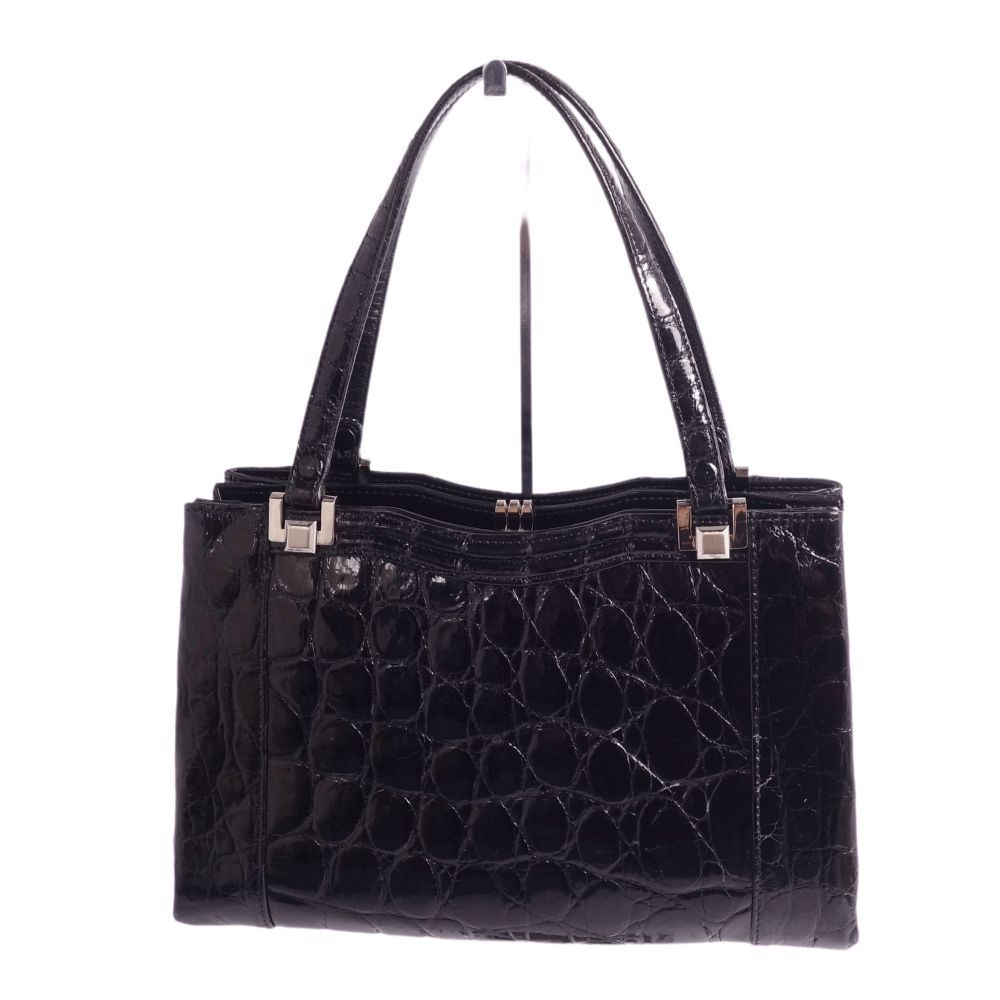 美品 クロコダイル CROCODILE バッグ ハンドバッグ シャイニークロコ ワニ革 カバン 鞄 レディース ブラック |