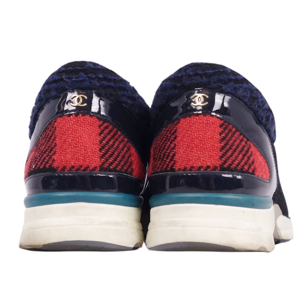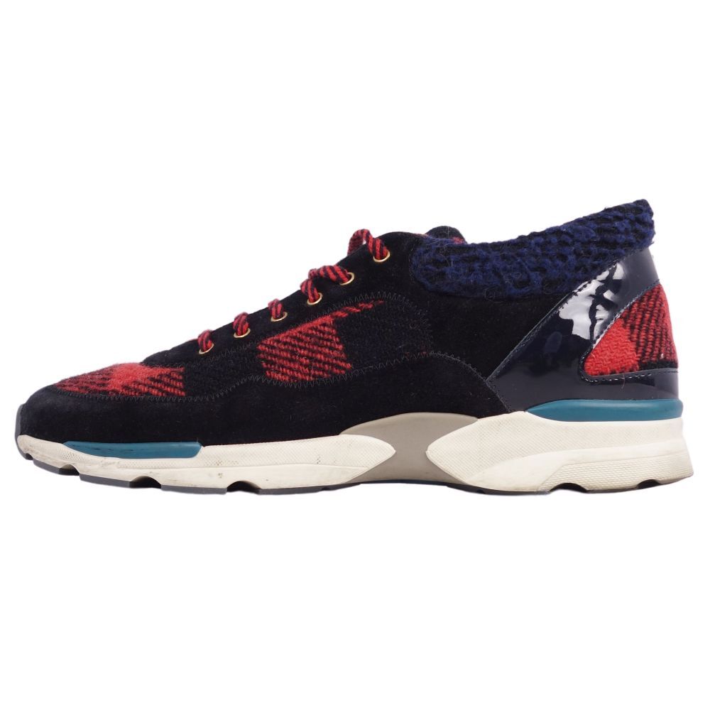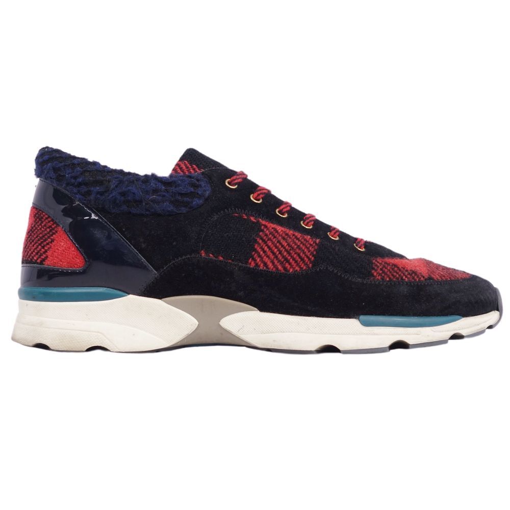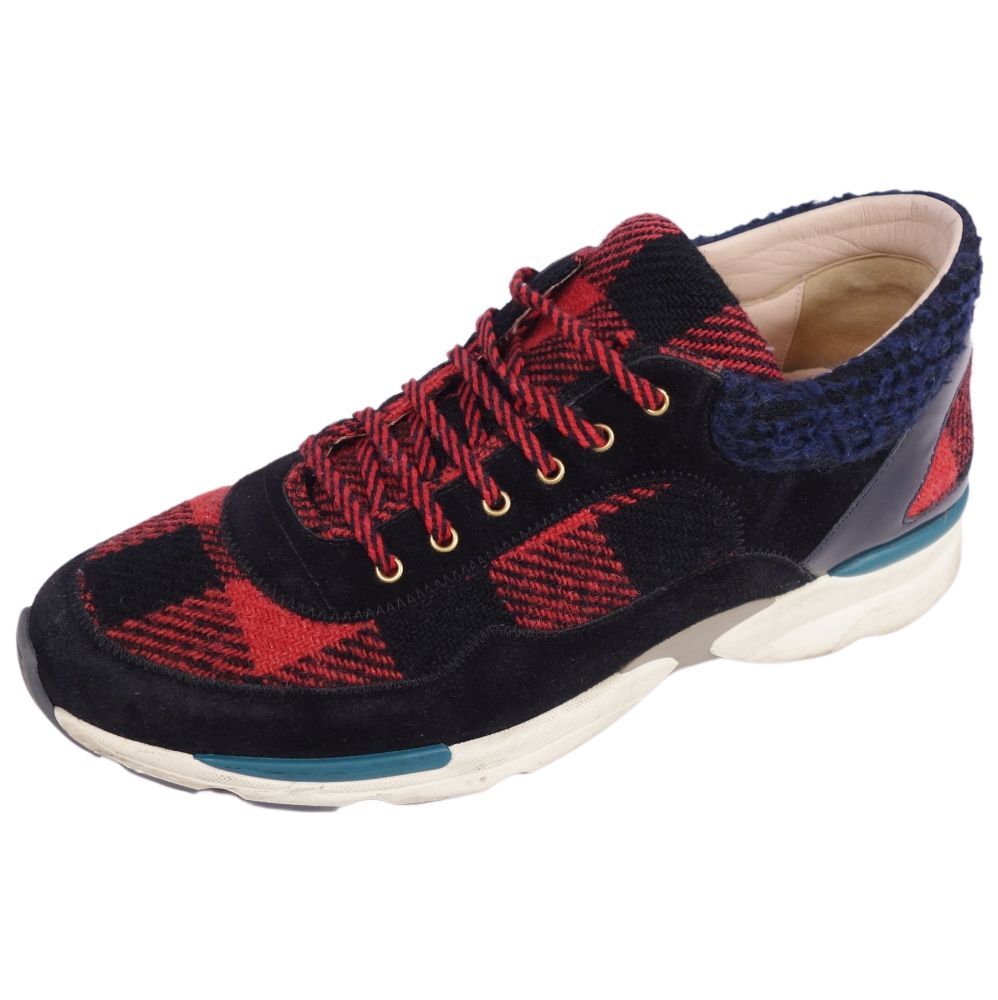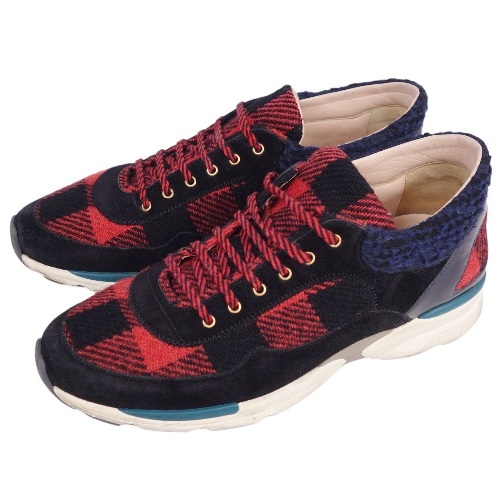 | シャネル CHANEL スニーカー ローカット G30445 ココマーク ツイード レザー メンズ 42 レッド/ブラック |