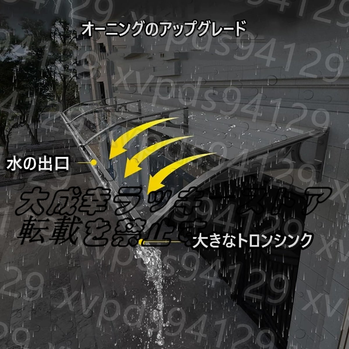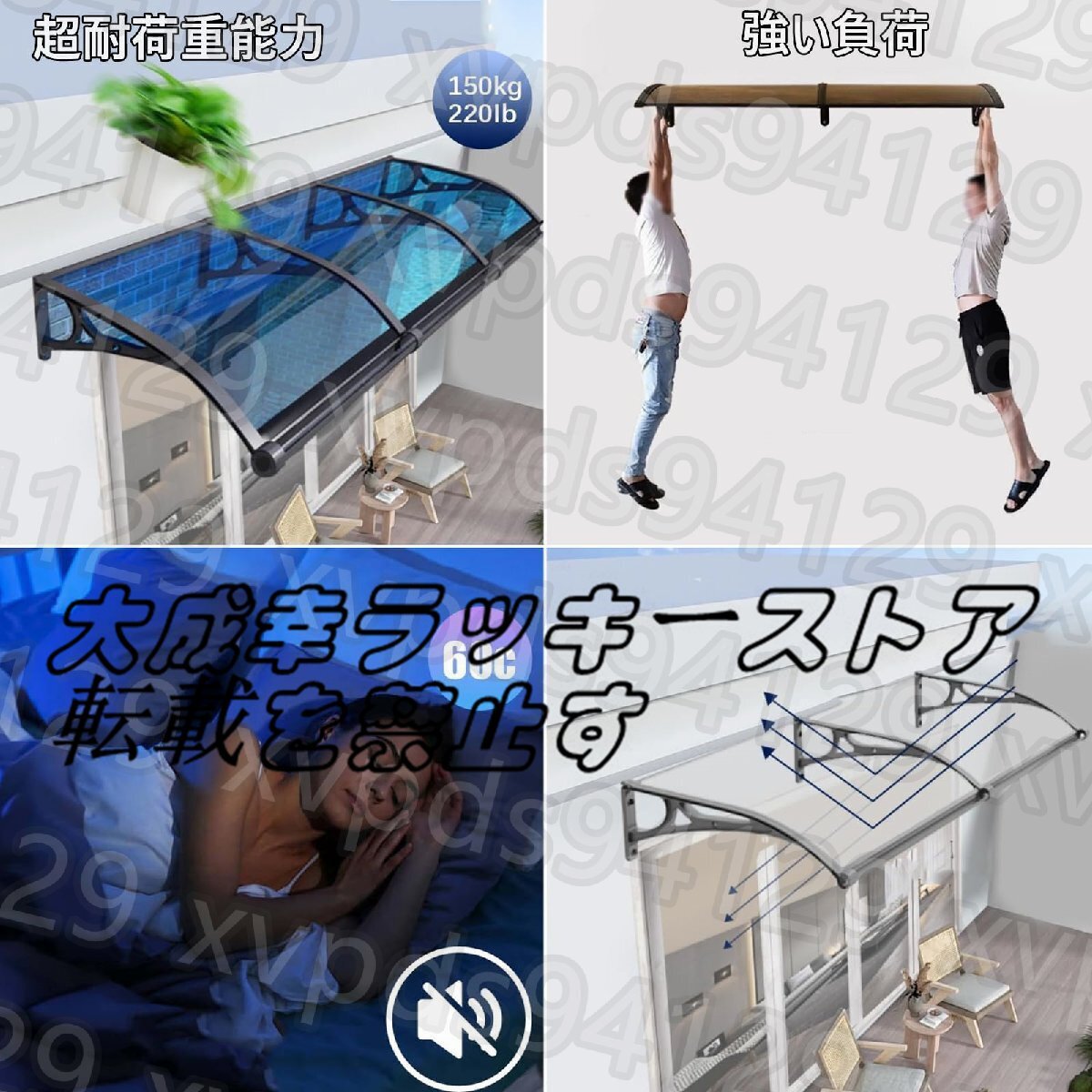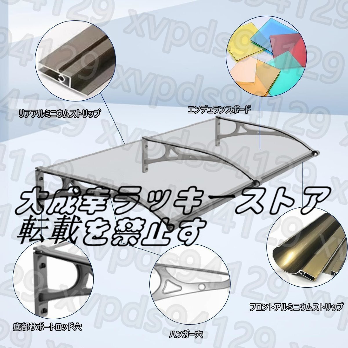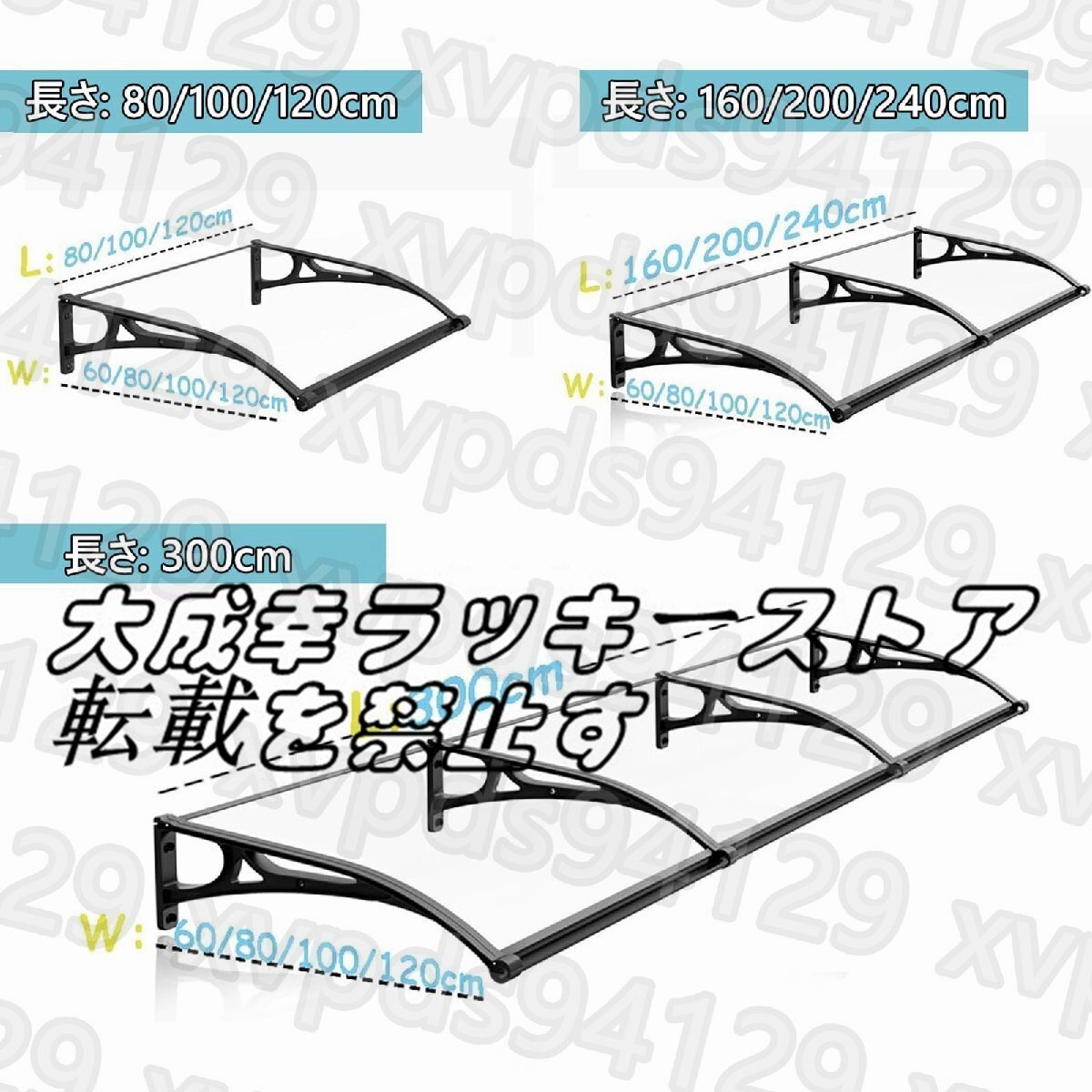 屋根庇 アルミブラケット付き屋外フロントドアオーニング、ドア入口用 窓用オーバーハングオーニング、ポリカーボネート製 80*300cm