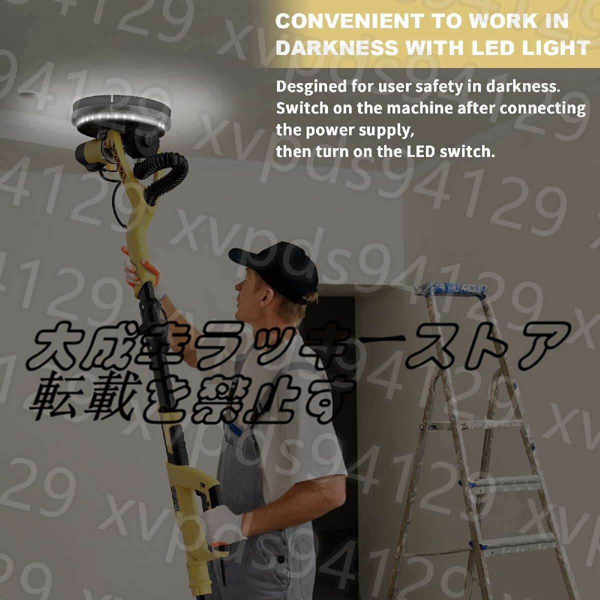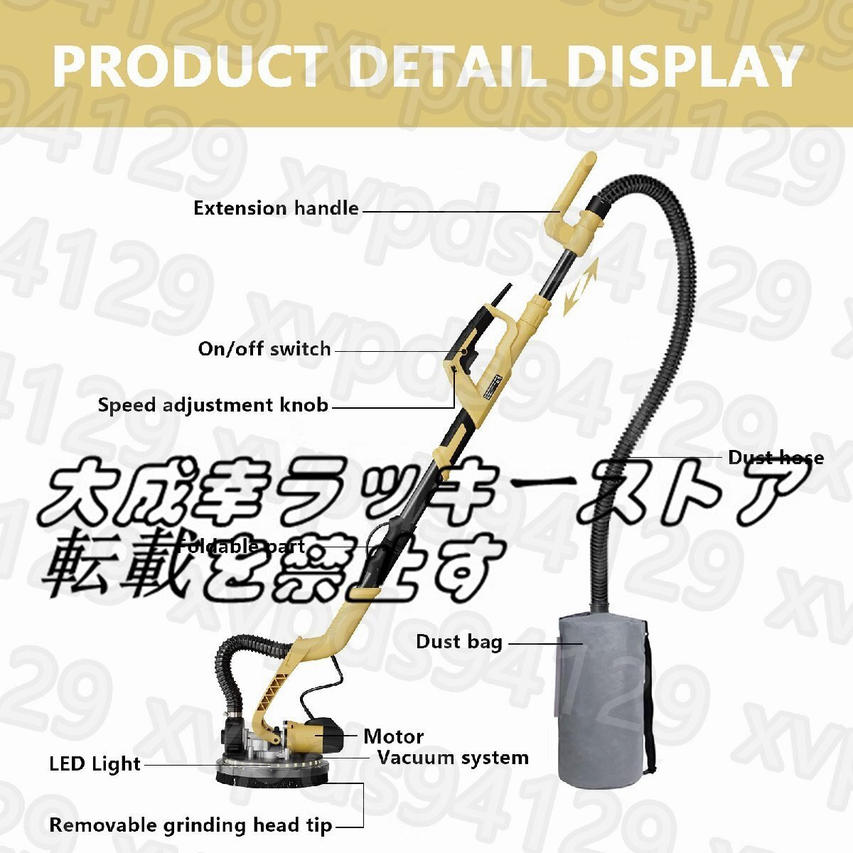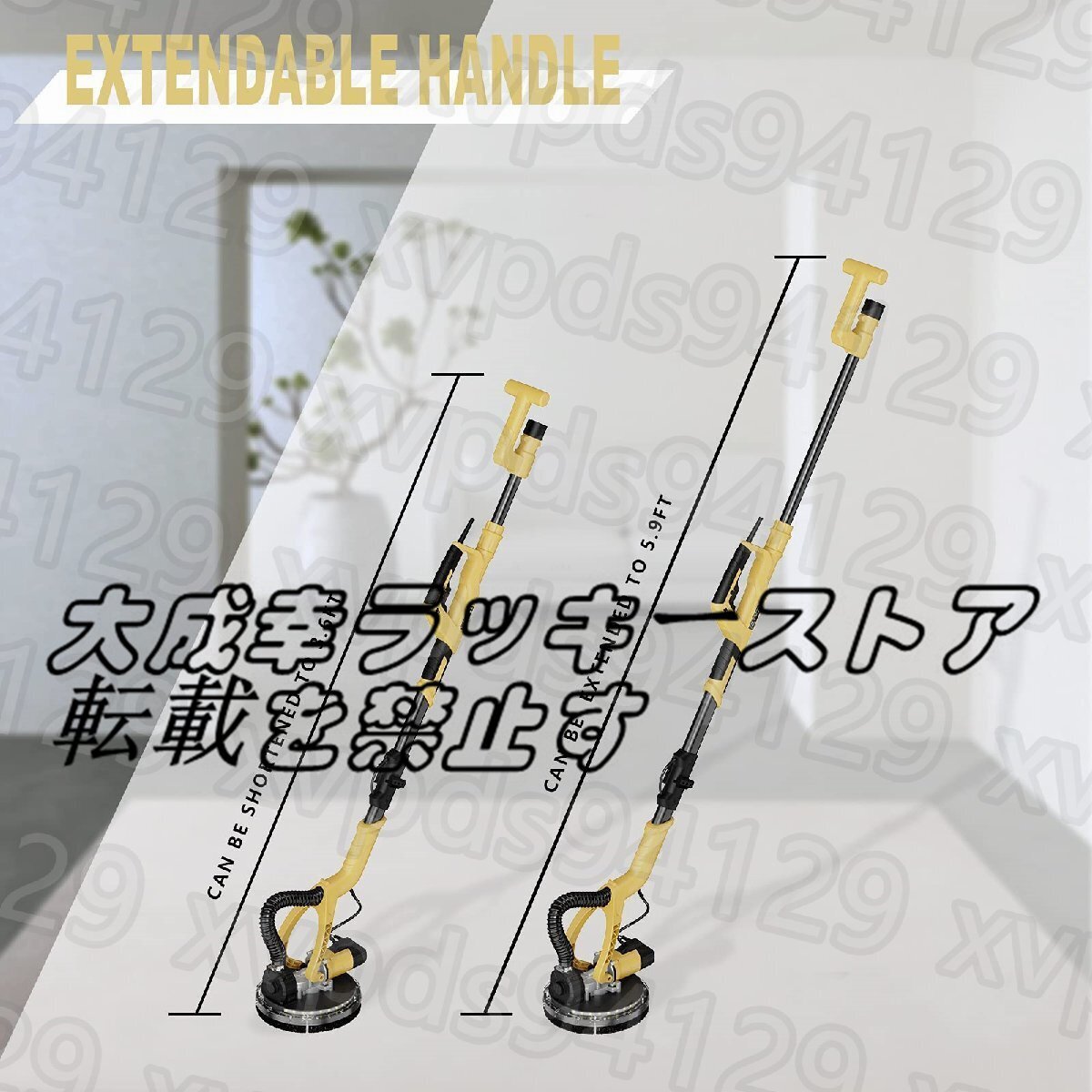 YATTICH 乾式壁サンダー、電動乾式壁サンダー、7段階変速、1000-1850RPM LEDライト付き、伸縮ハンドル、12枚のサンディングディスク、キャリーバッグ、ダストレスドライウォールサンダー用自動ダスト除去システム。