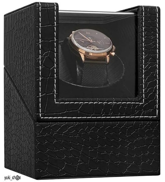 ワインディングマシーン ウォッチワインダー 1本巻き ワニ模様 自動巻き時計ワインディングマシーン 新型腕時計自動巻き上げ対応 高級感PU