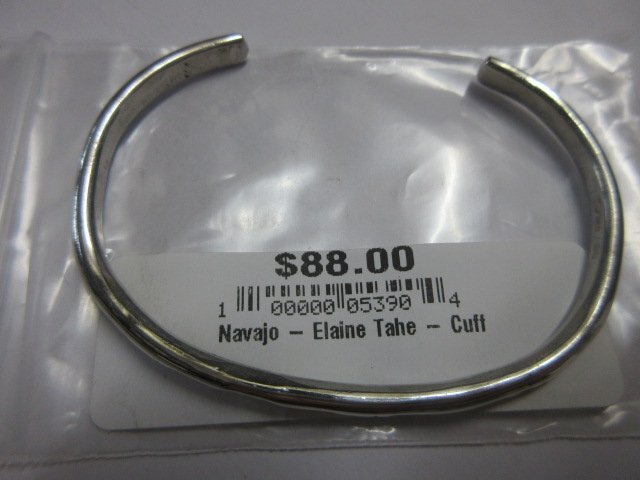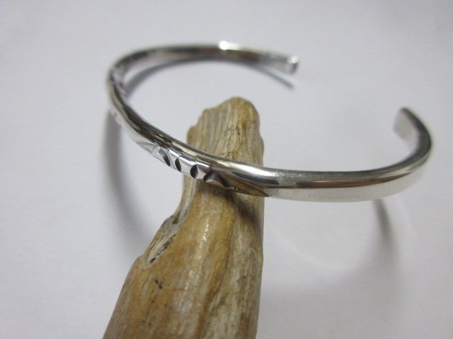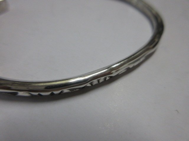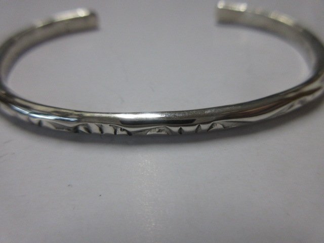 ★サイズ メンズSサイズ 手首回り17cmでフィットします シルバーだけの外周15cm弱 重さ11,8g 内径59mm 開口部30mm(多少の調節可能) 中央の幅3mm強 端の幅4mm強 ★Goods アメリカ インディアン ナバホ族 新品 シルバーバングル 永遠に受け継がれていくインディアンジュエリーです 貴方のコレクションのお一つにいかがでしょうか! こちらのお品をプライスタグ付きのまま送らせて頂きます 材質 スターリングシルバー 製作者 Tahe ナバホ族 刻印 sterling Tahe 不明瞭 インディアンさんのハンドメイドですので、多少の変形等ございます。 どうぞよろしくお願いいたします。