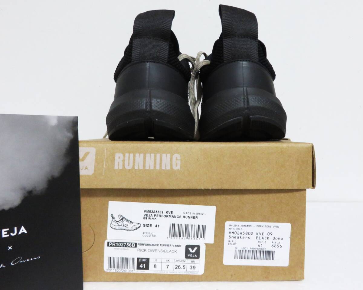 送料無料 新品 VEJA × Rick Owens PERFORMANCE RUNNER 41 ブラック リックオウエンス ヴェジャ メッシュ ニット スニーカー 26.5