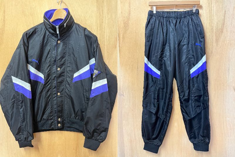 | 良好 PUMA プーマ ヒットユニオン オールド ナイロン ジャージ 上下セット 黒 サイズL | ||