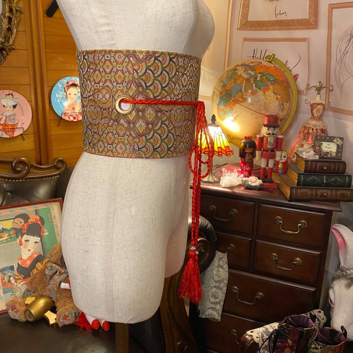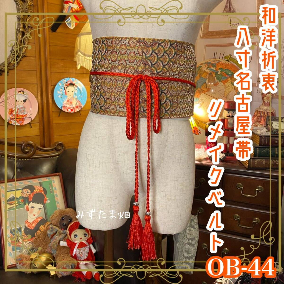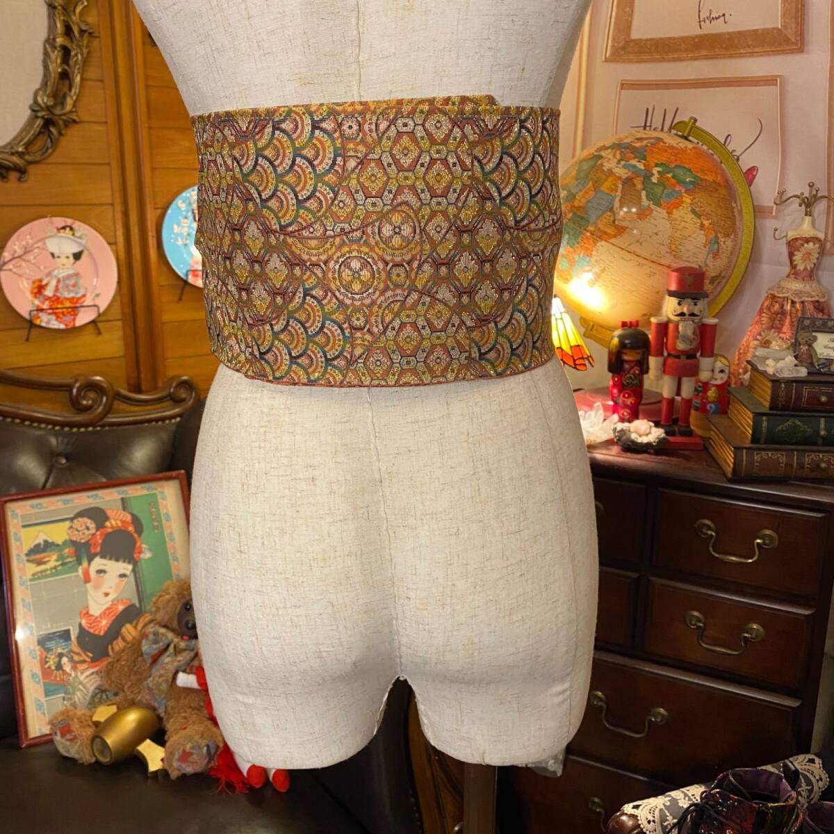 【 和洋折衷 レトロ 古着 名古屋帯 着物 和装 リメイク サッシュベルト ウエストマーク ハンドメイド OB-44 】