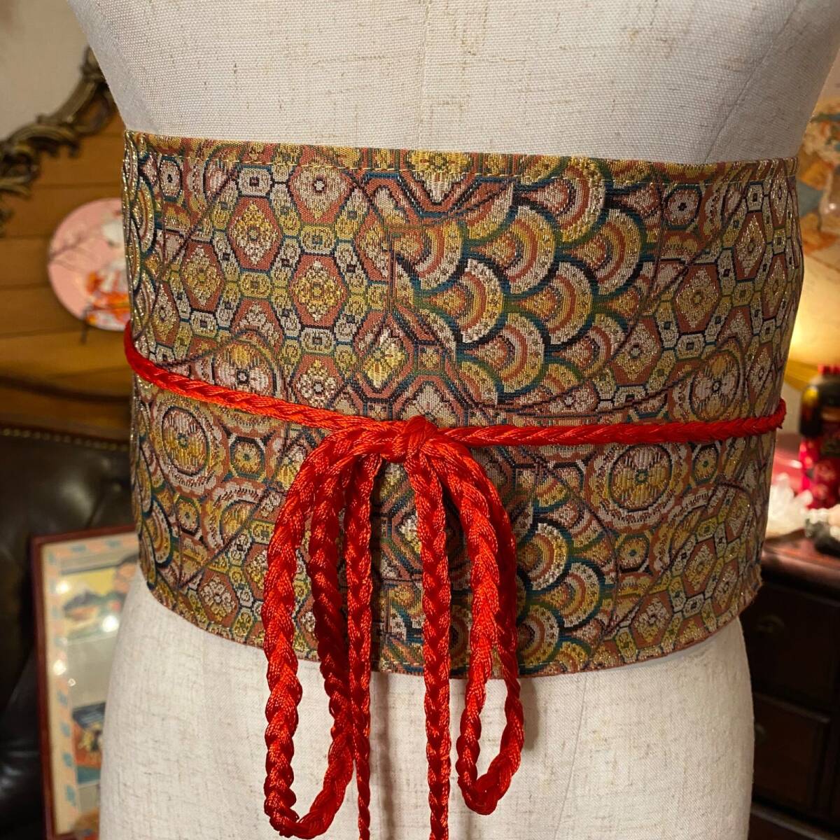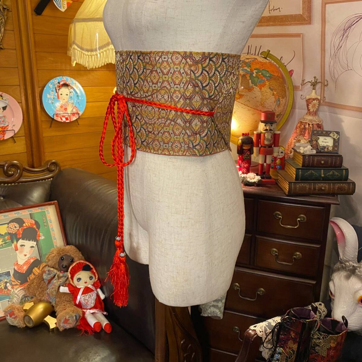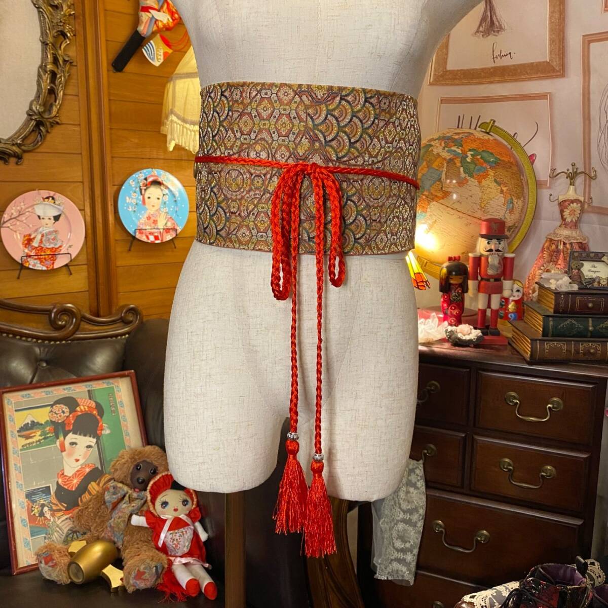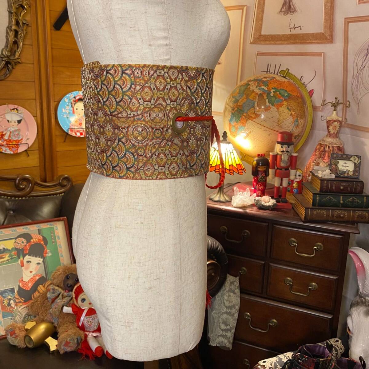 【 和洋折衷 レトロ 古着 名古屋帯 着物 和装 リメイク サッシュベルト ウエストマーク ハンドメイド OB-44 】