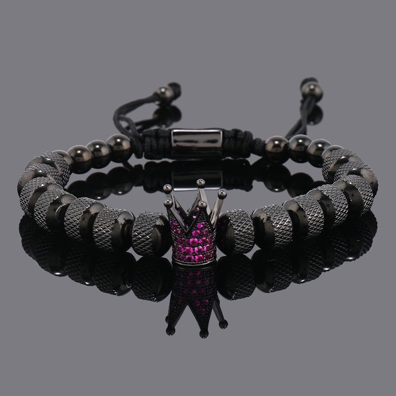 ☆1円〜新品新作 海外限定 ブラックパープル紫 鍍金 テニスブレスレット 鋼の王冠 高級ビーズ ジュエリー ハワイアン 日本未発売
