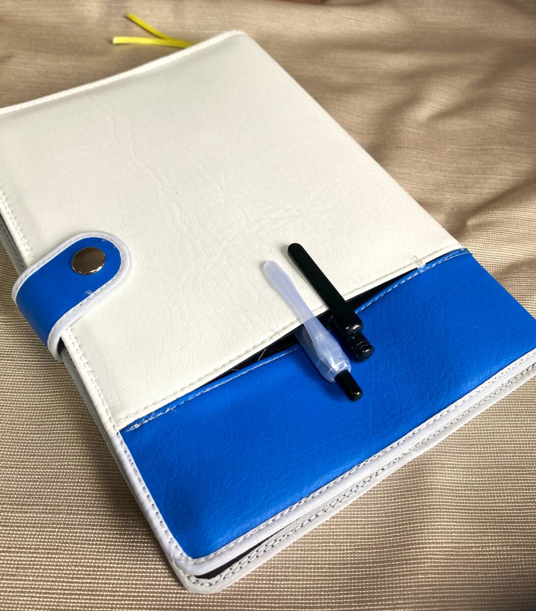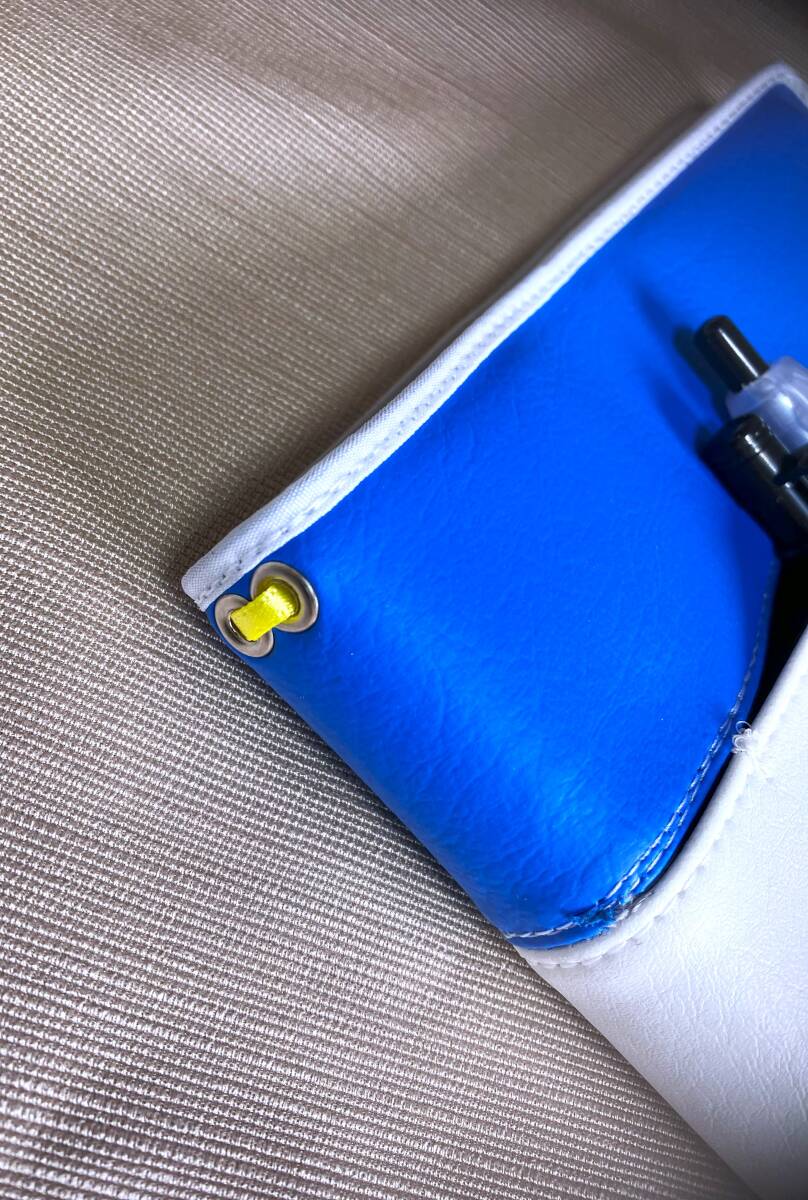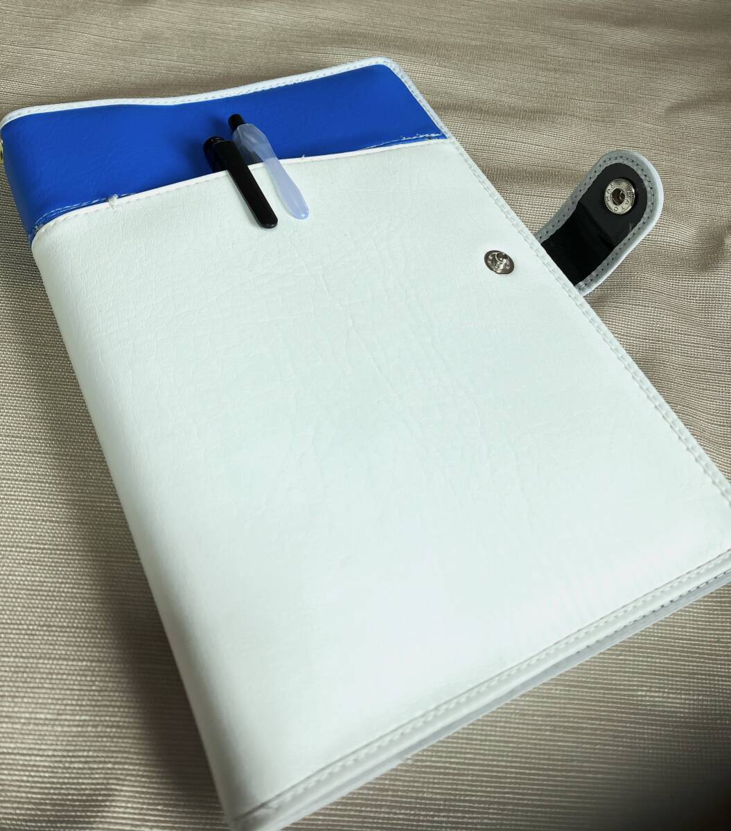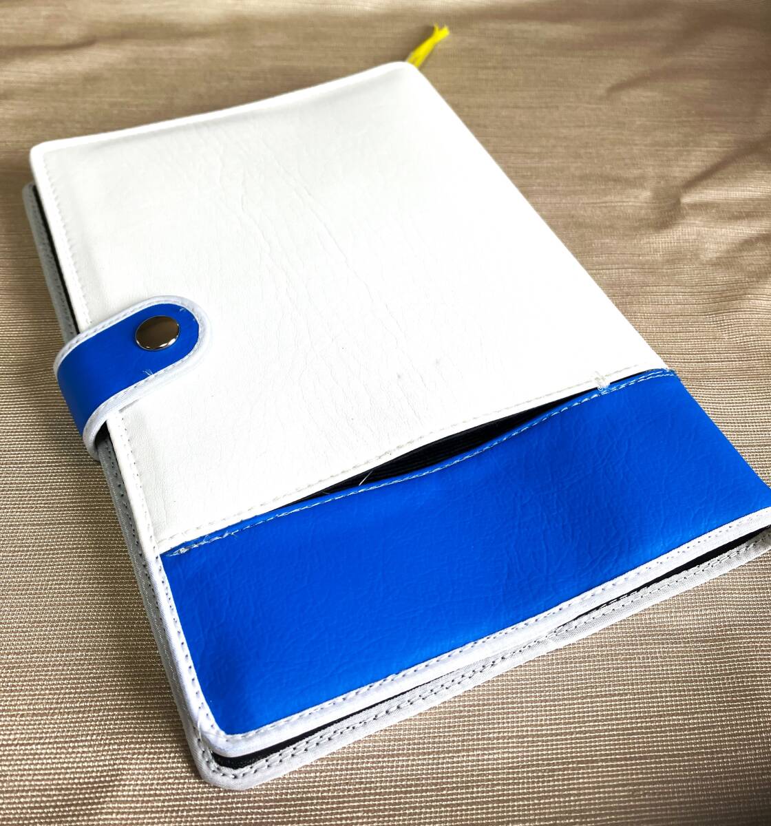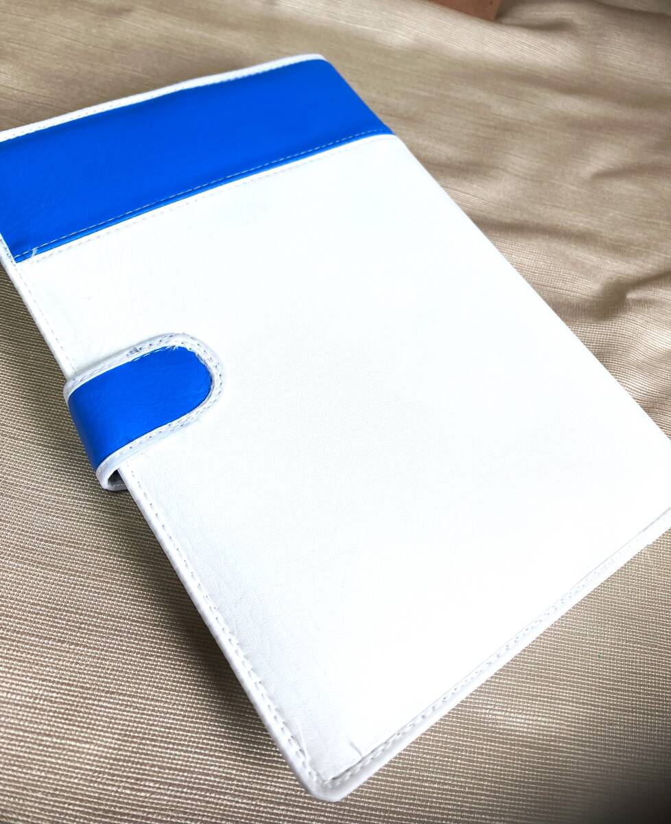 A5サイズ【表紙ポケット付きノートカバー】合皮■ホワイト/ブルー