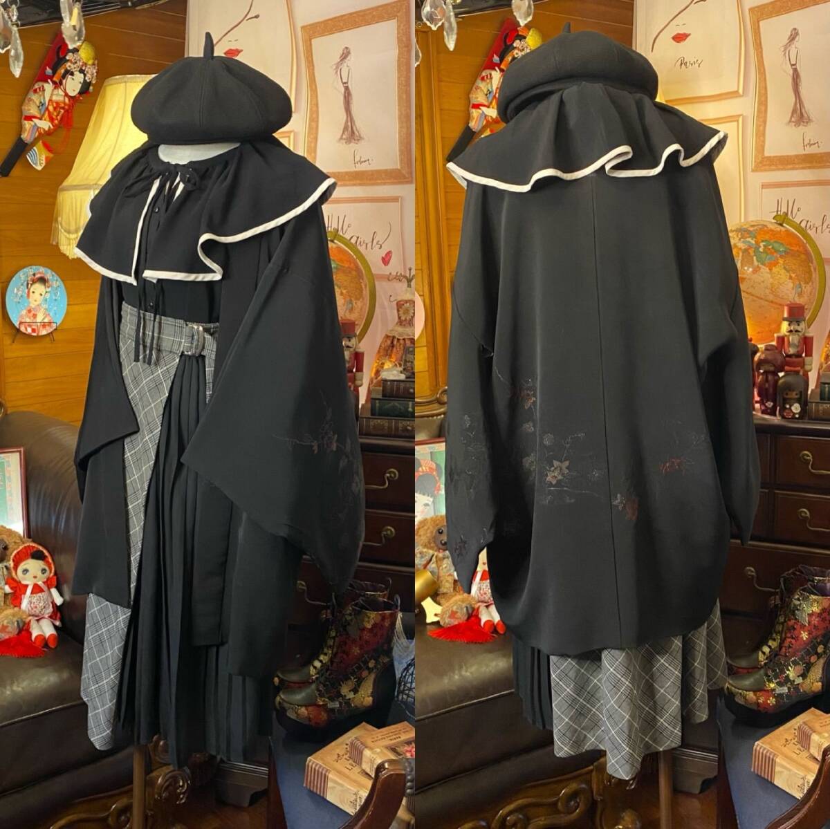 ①古着/USED品:黒絵羽織り