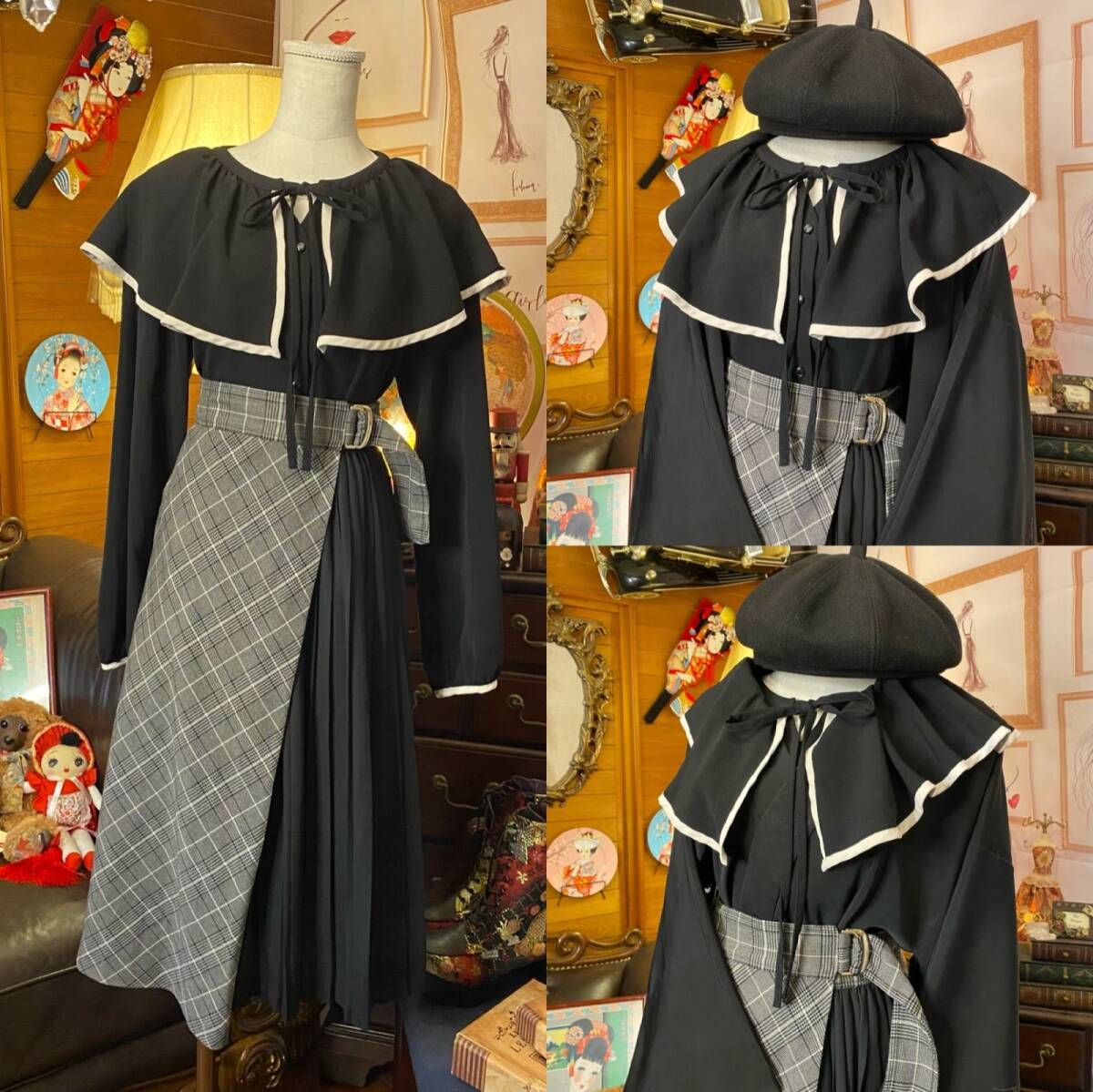 【 和洋折衷 コーディネート 黒絵羽織コーデ まとめ売り レトロ クラシカル 和装 セレクト 黒/ブラック系 3点セット C-482 】