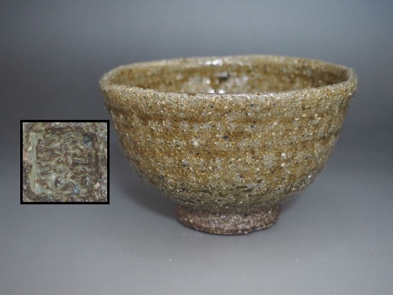 A2855 陶印有り 義 茶碗 ☆ 幅12.7㎝ 茶道具 抹茶器 茶器 抹茶道具 茶懐石 茶事 茶の湯 抹茶碗 陶器 作家物 在銘 陶印 窯印 美品 良品 無傷 | ||