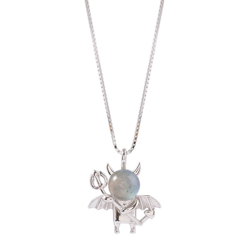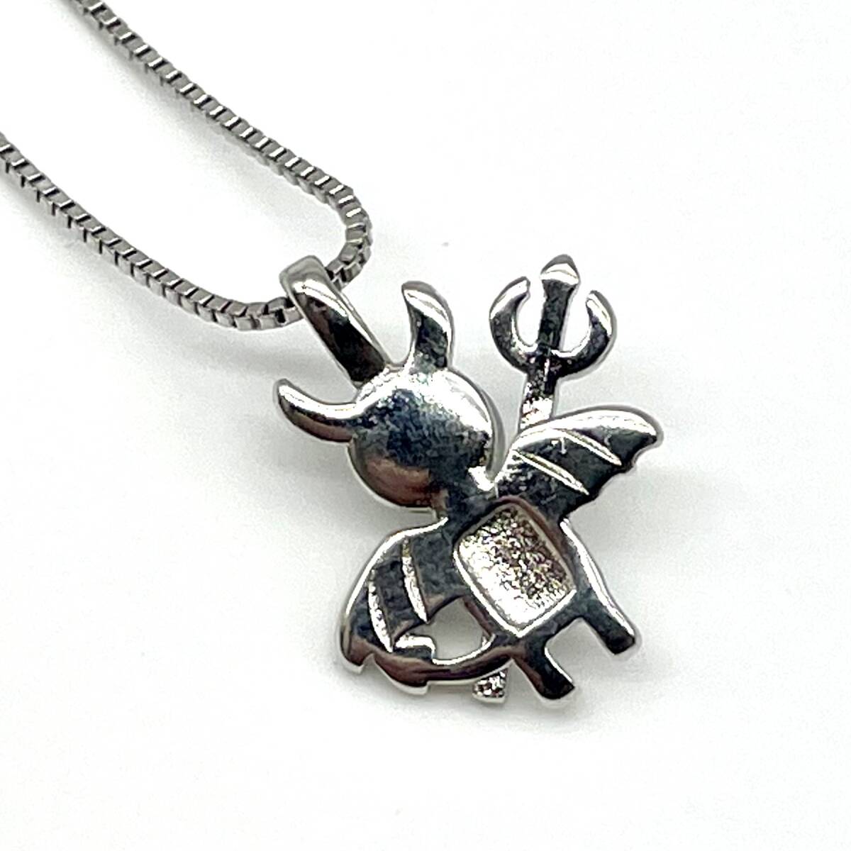 小さな悪魔をチャームのモチーフにした可愛らしい印象のシルバーチェーンネックレス。