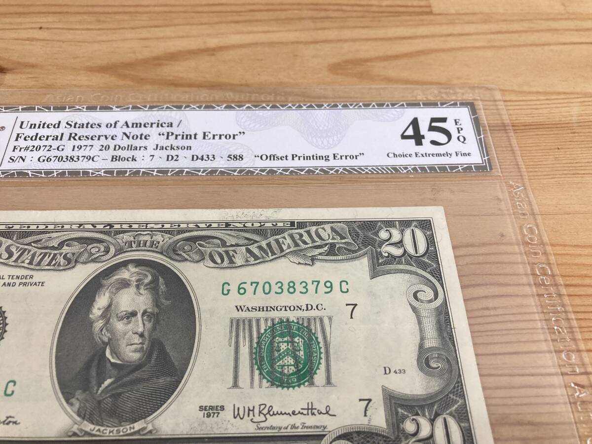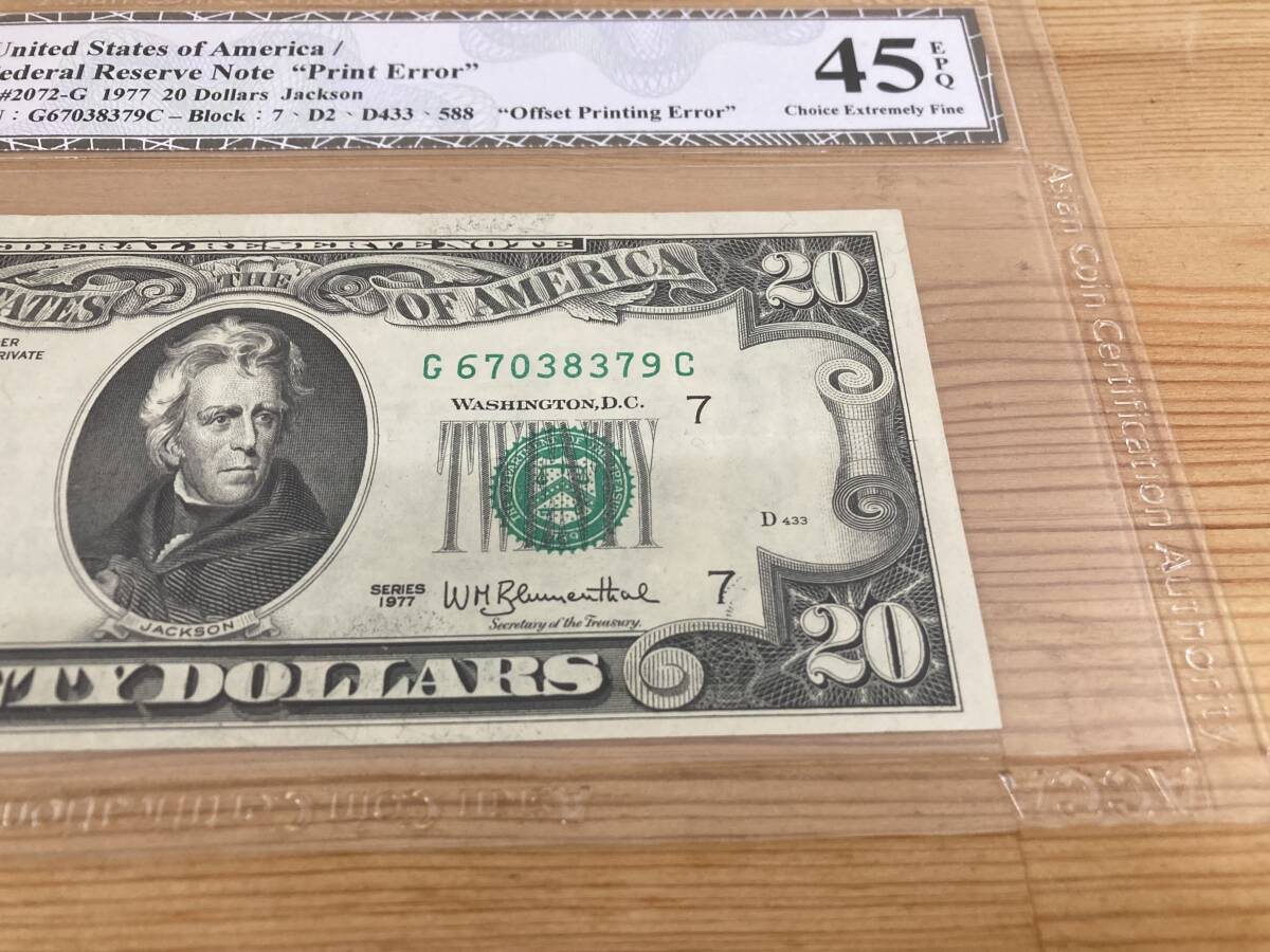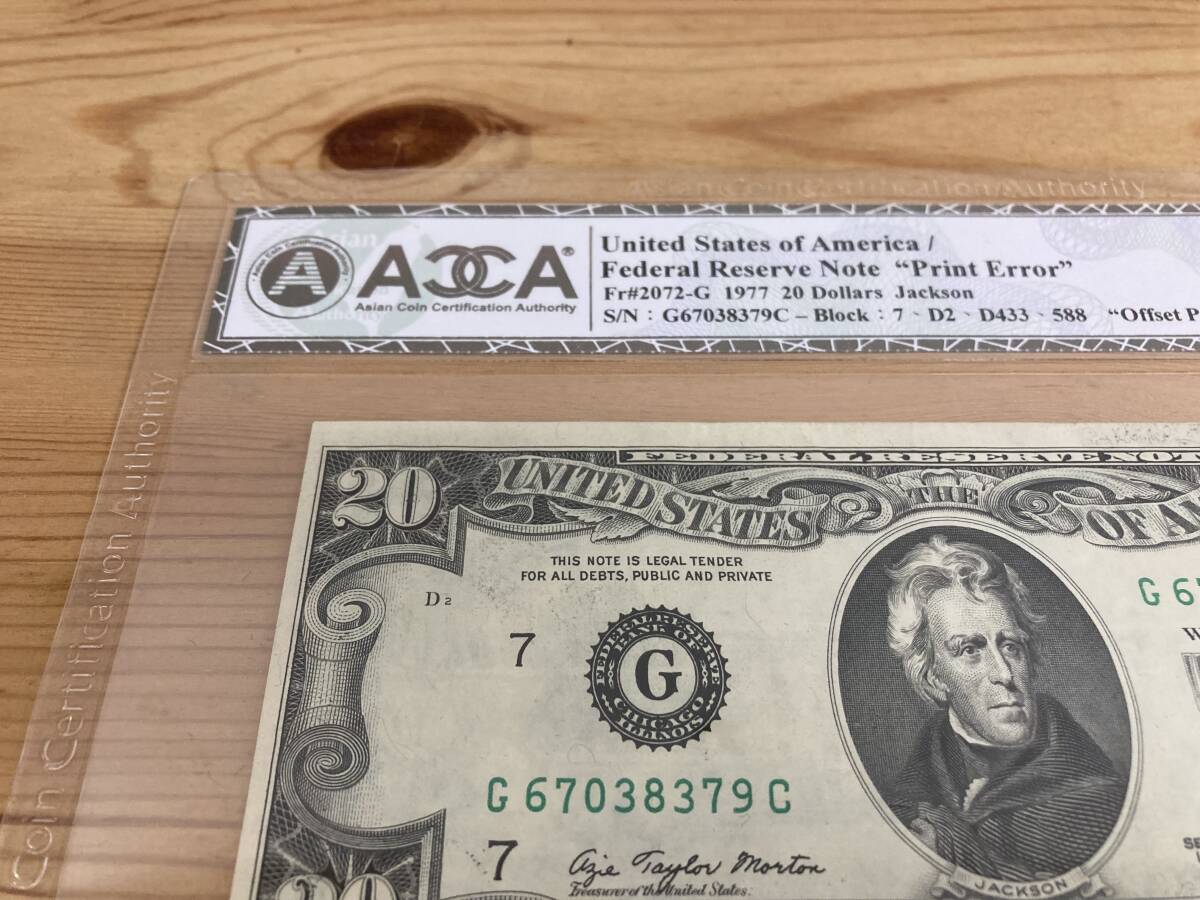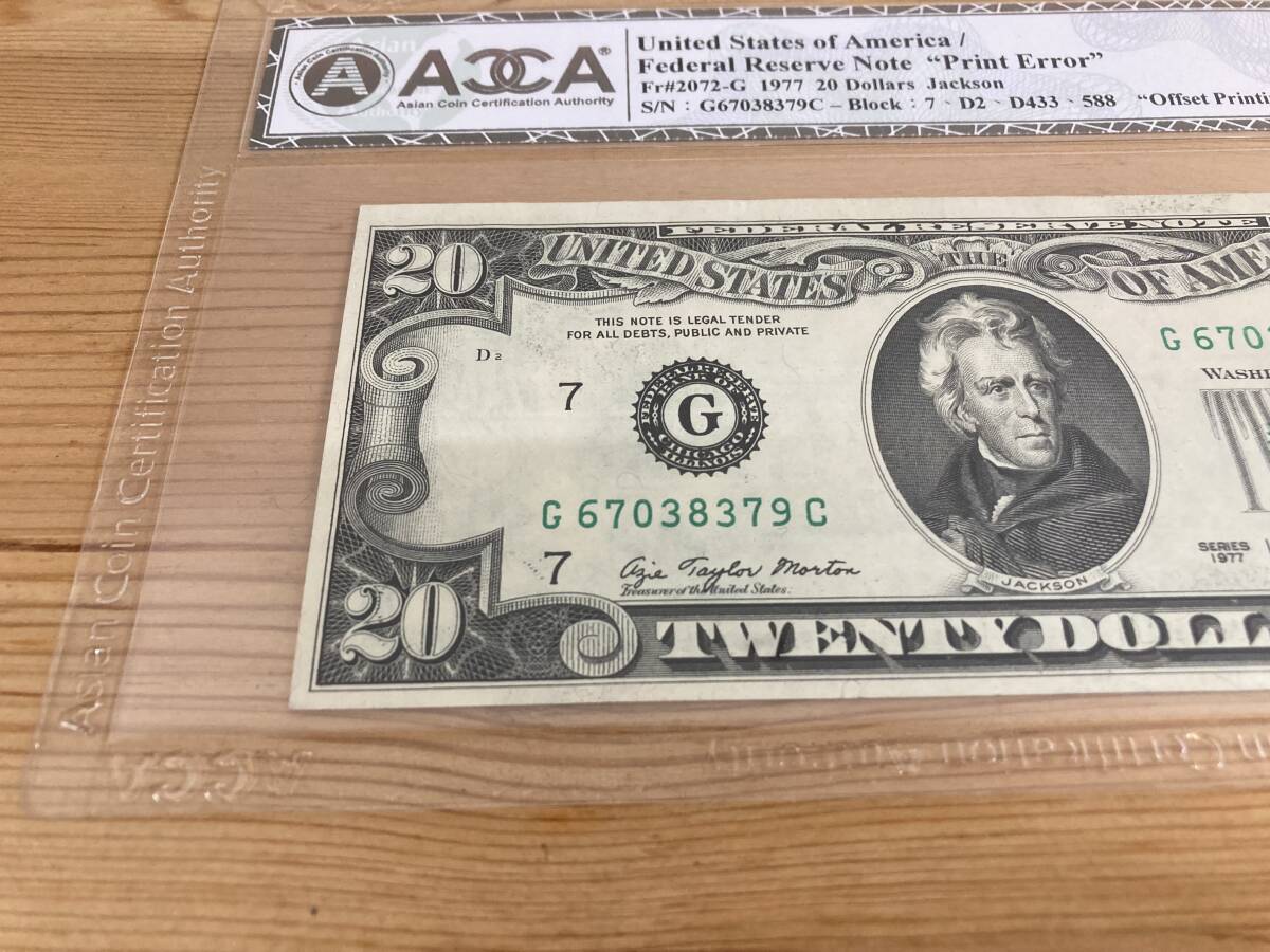 【注目/珍品/レア/希少/貴重】20ドル札 紙幣 印刷エラー アメリカ 鑑定済み