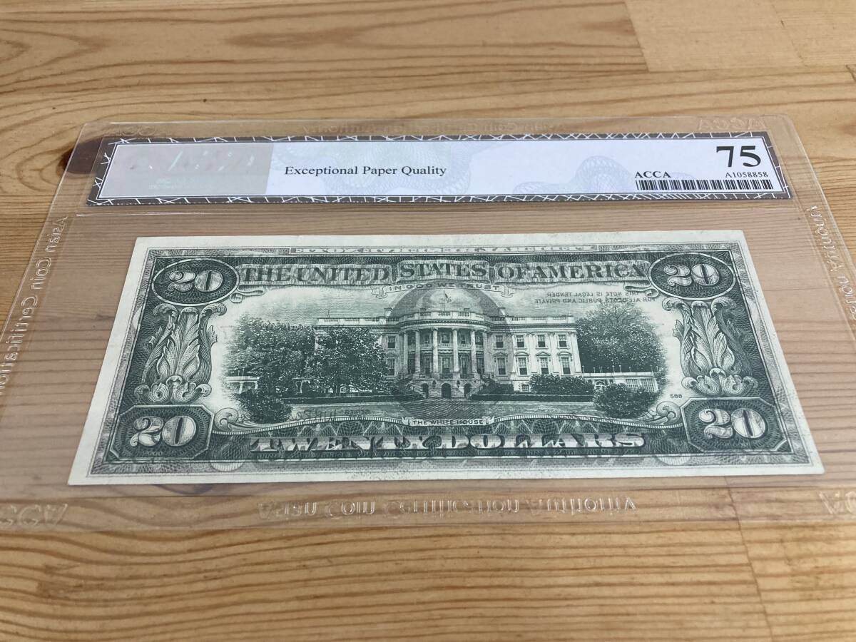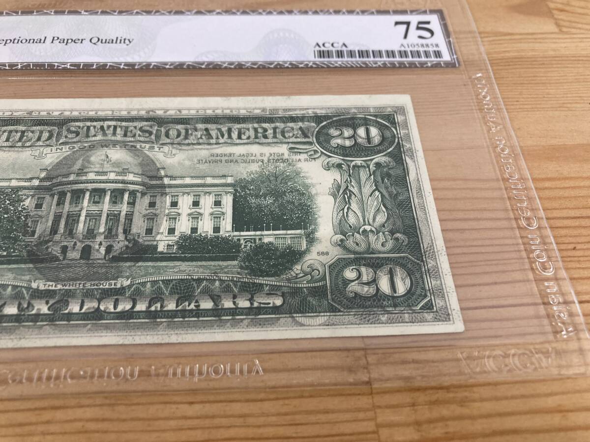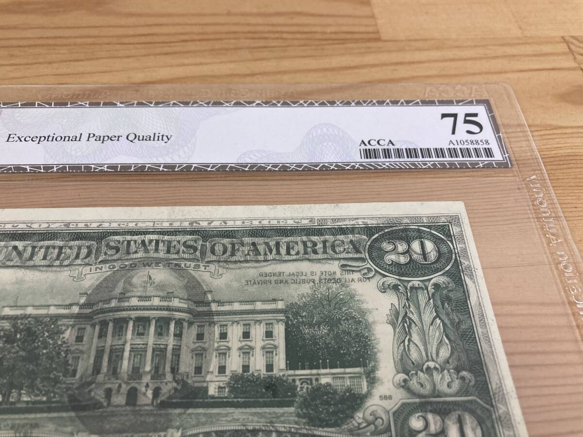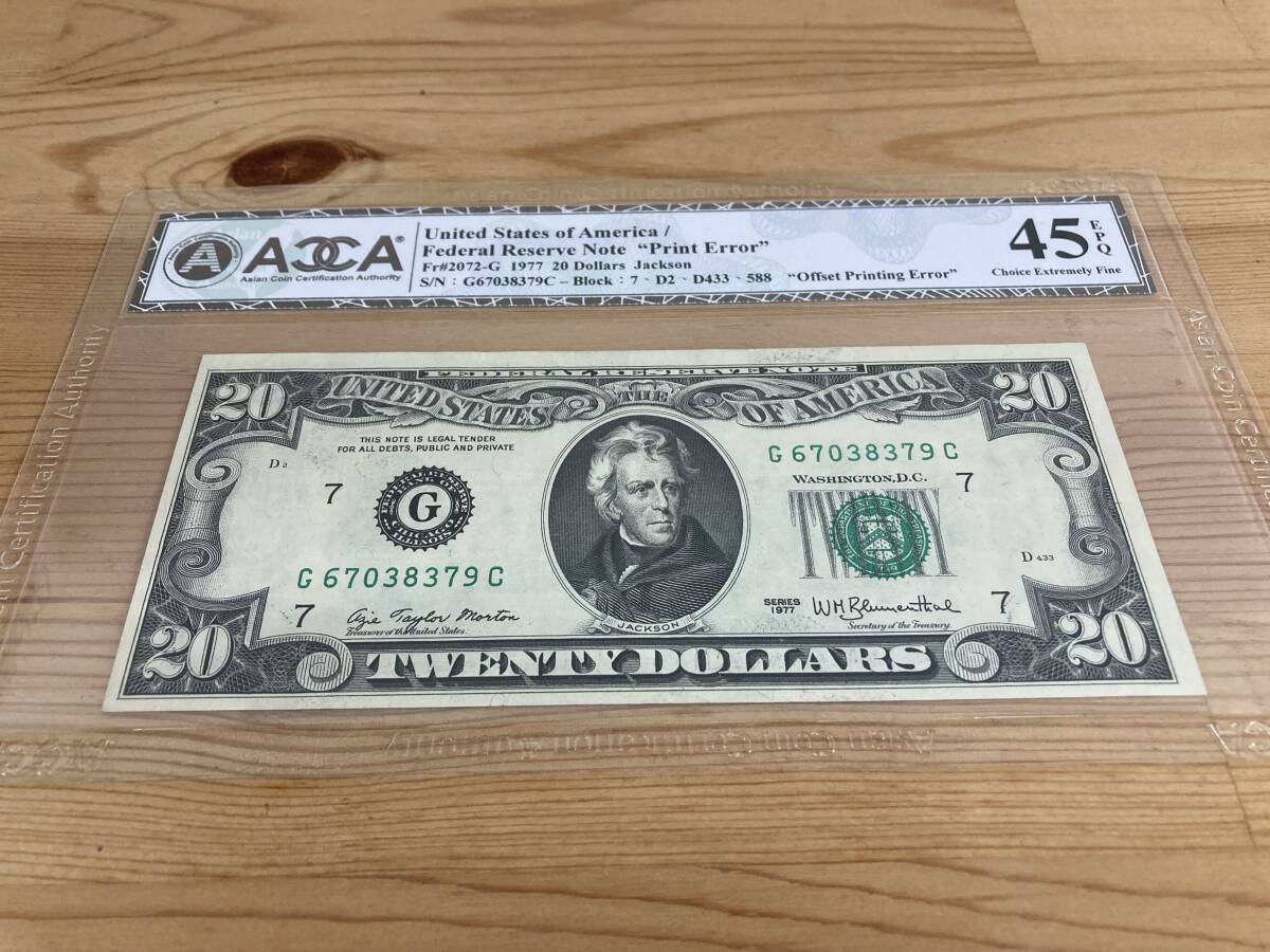 【注目/珍品/レア/希少/貴重】20ドル札 紙幣 印刷エラー アメリカ 鑑定済み