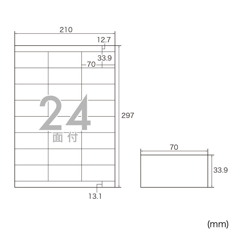 下地が透けないラベル。プリンターを選ばないマルチタイプ。24面・上下余白付き。