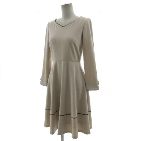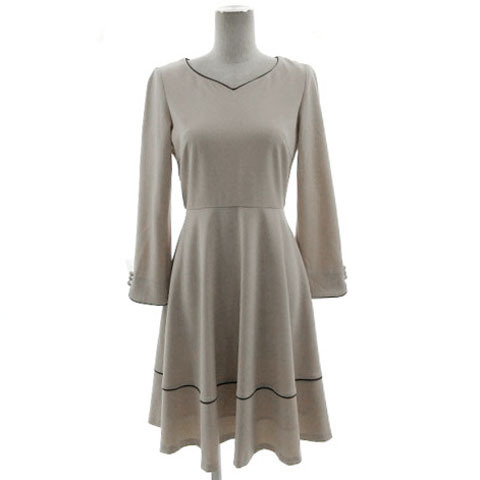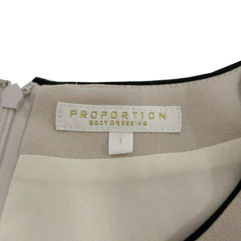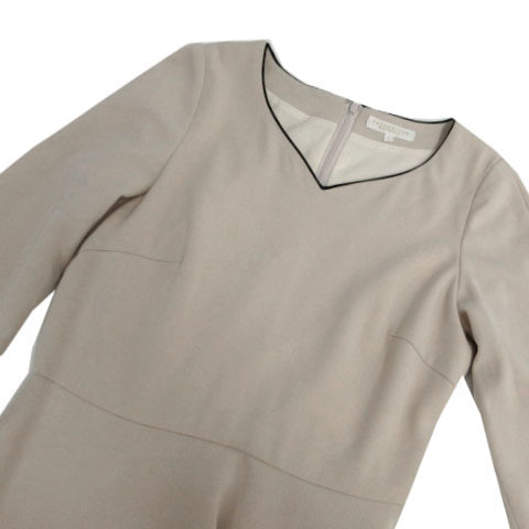 プロポーション ボディドレッシング ワンピース ハートシェイプドネック調 パイピング 長袖 ミディ丈 グレーベージュ系 ブラック 黒 1 レディース