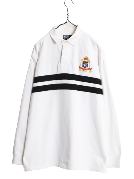 90年代のオールド 人気ブランド POLO RALPH LAUREN の長袖ラガーシャツです。 素材は、100% COTTON ( コットン ) しっかりとした厚手のヘビーウェイト、ラガーシャツ素材を使用 襟・前立て・ボタンエンド・サイドスリットに補強 肩回りはしっかりとした生地を2重にしたキルティング補強 脇には補強とベンチレーション付き 左胸にワンポイント クレストロゴ刺繍 合わせやすい、ホワイトボディに クラシカルなブラックの胸ボーダー モノトーン 動きやすさを提供する、サイドにスリット入りのボックスタイプ 本格的ラガーシャツ同様のしっかりとした作り ラルフローレンらしいスタイリッシュさもある商品です |