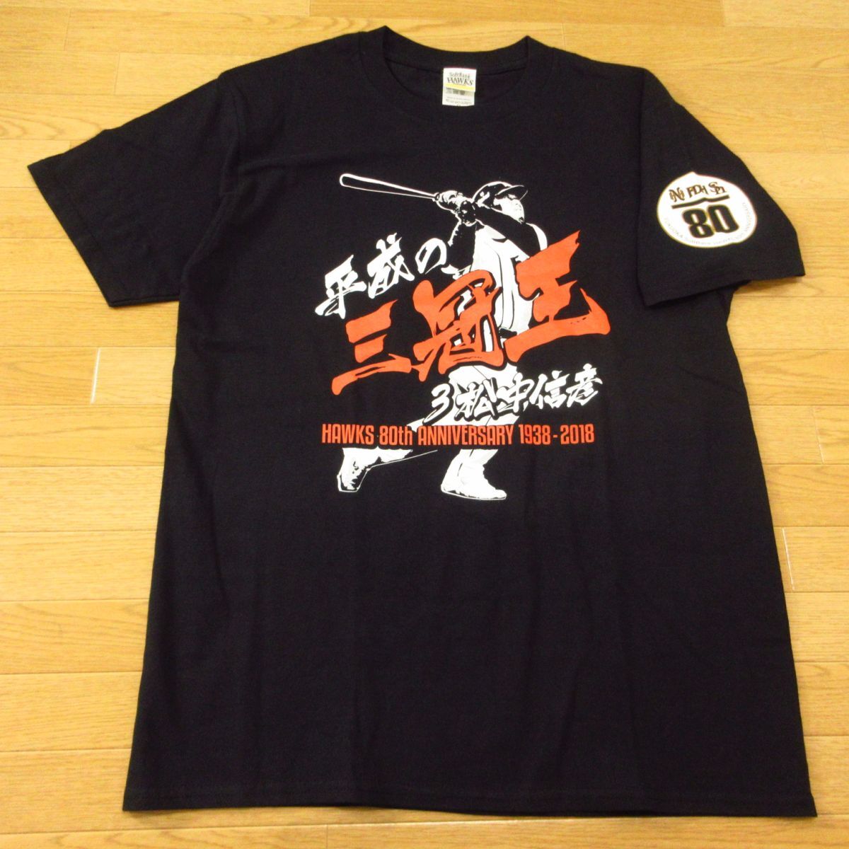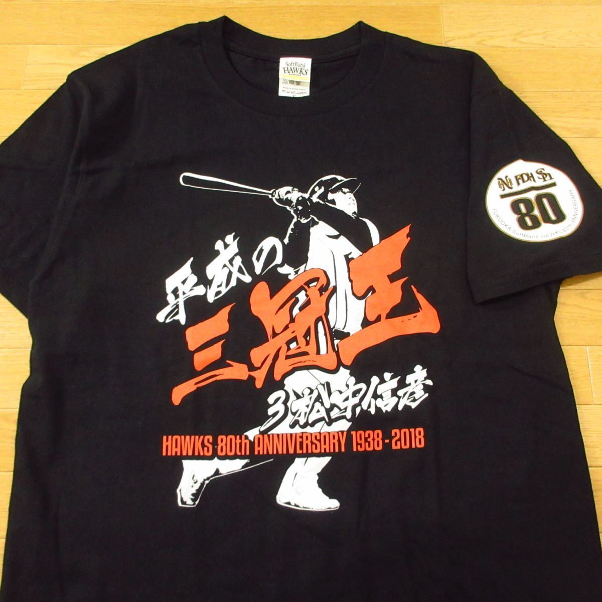 ◎美品!松中信彦 #3 80周年記念 福岡ソフトバンク ホークス◆ユニフォーム Tシャツ 平成の三冠王◆メンズ 黒 Sサイズ◆A6211