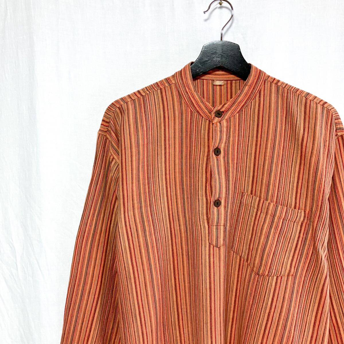 良品 80s 90s ストライプ ネパールシャツ XL相当 ユーロ ヨーロッパ アメカジ 長袖シャツ