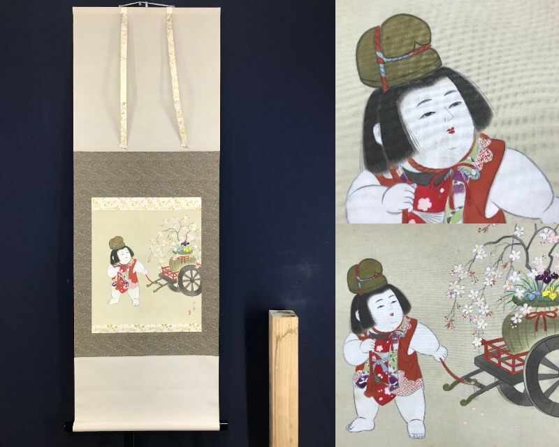真作/玲華/京人形/花車之図/横物/掛軸☆宝船☆AG-396