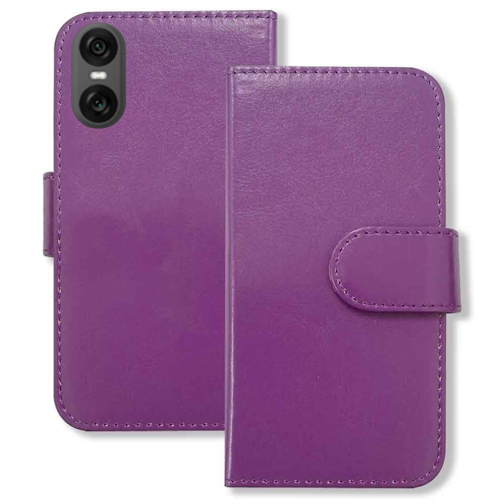 Xperia 10 VI SO-52E SOG14 スマホケース(手帳パープル)手帳型 PUレザー 無地 ケース ダイアリータイプ 横開き カード収納 カバー