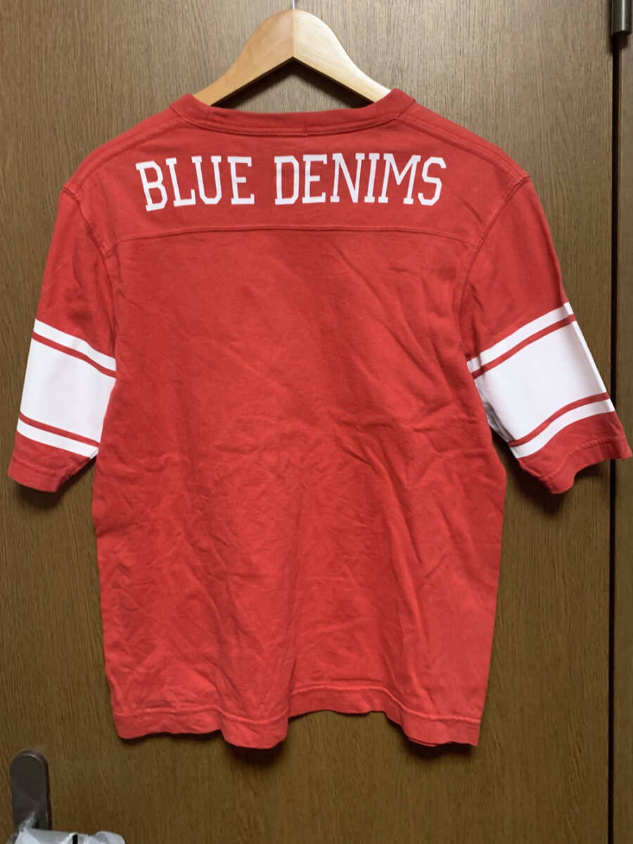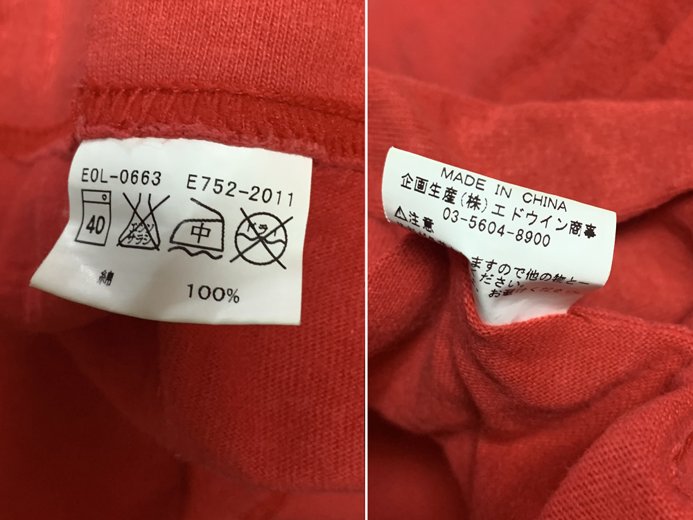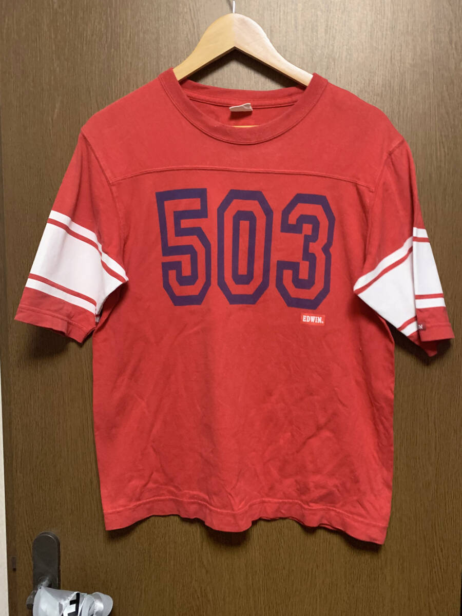 M EDWIN|エドウィン 半袖Tシャツ レッド ホワイトプリント袖 503 BLUE DENIMES