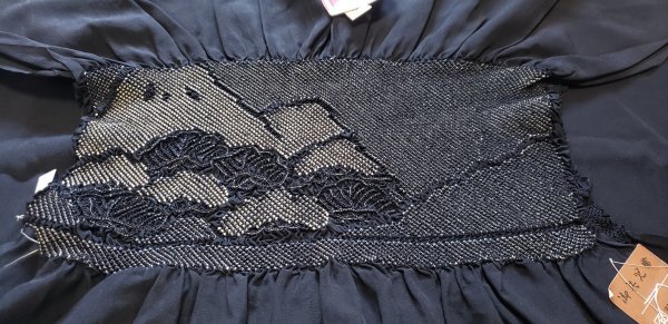 正絹 高級 男兵児帯 絞り入り 濃紺地 山松柄 未使用 です。
