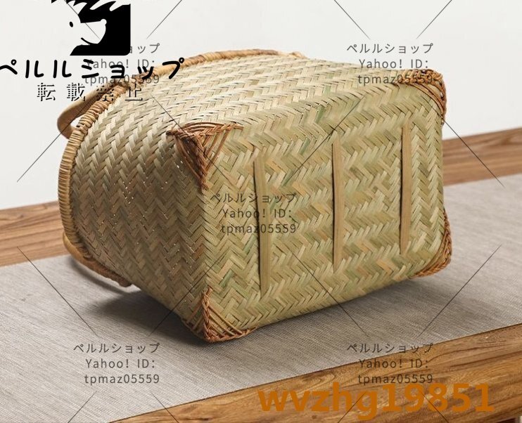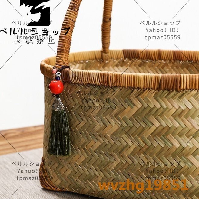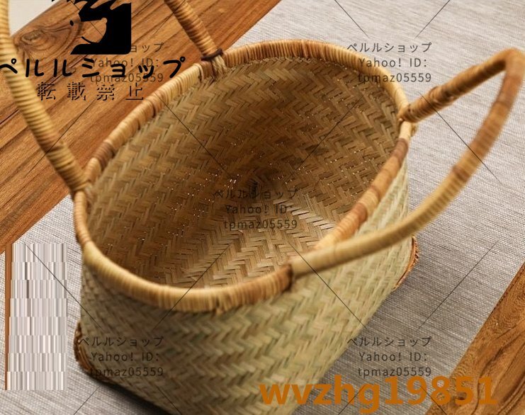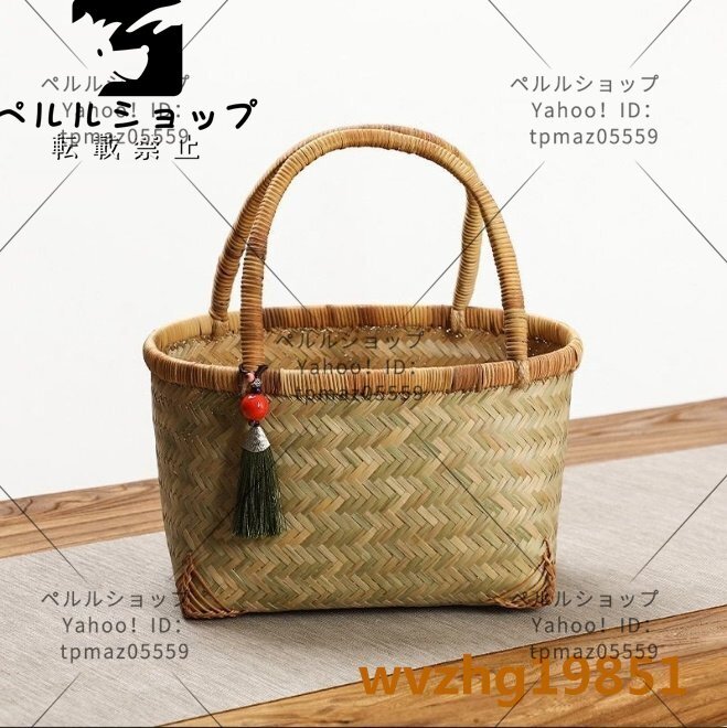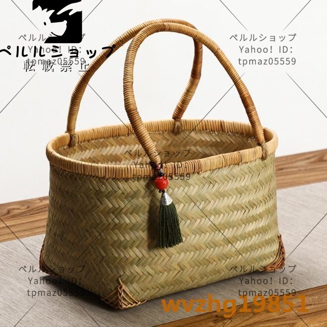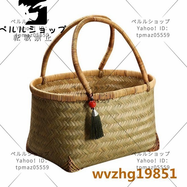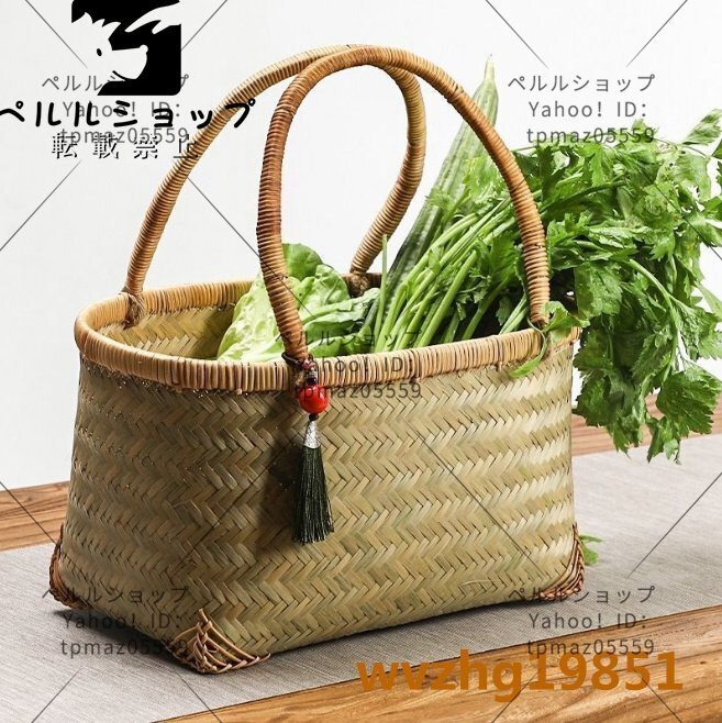 竹編み上げカゴバック  手作りバスケット お洒落買い物カゴ 収納バッグ