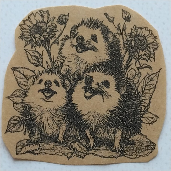 491 はりねずみ ひまわり はんこ ハンコ ヴィンテージ アンティーク スタンプ ゴム印 ラバースタンプ 夏 暑中見舞い ハリネズミ ヒマワリ