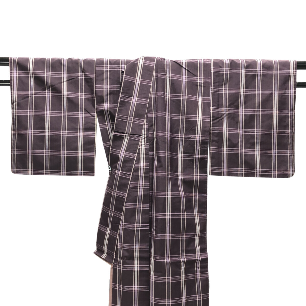 | 紬アンサンブル/美品/紫/格子/羽織&着物/仕立上がり/適応身長140~145㎝/9215 |