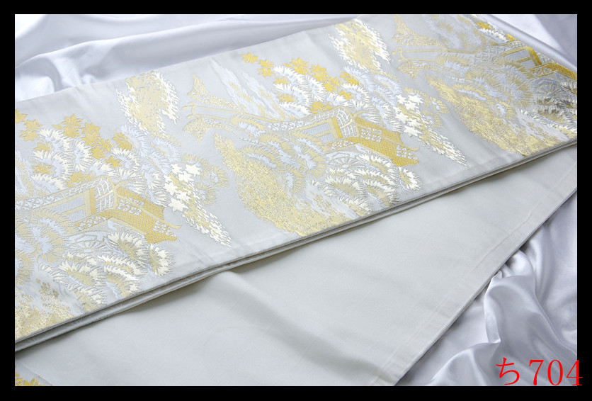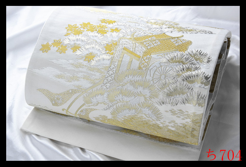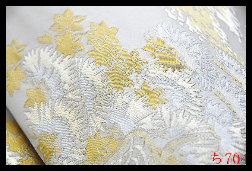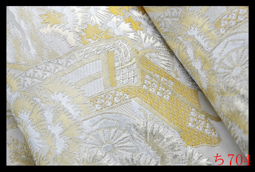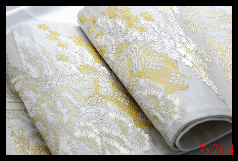 A【ち704】西陣美品 紅葉源氏車文 シルバー色地  両面正絹六通高級美術袋帯 検★着物名古屋帯和装小物帯締