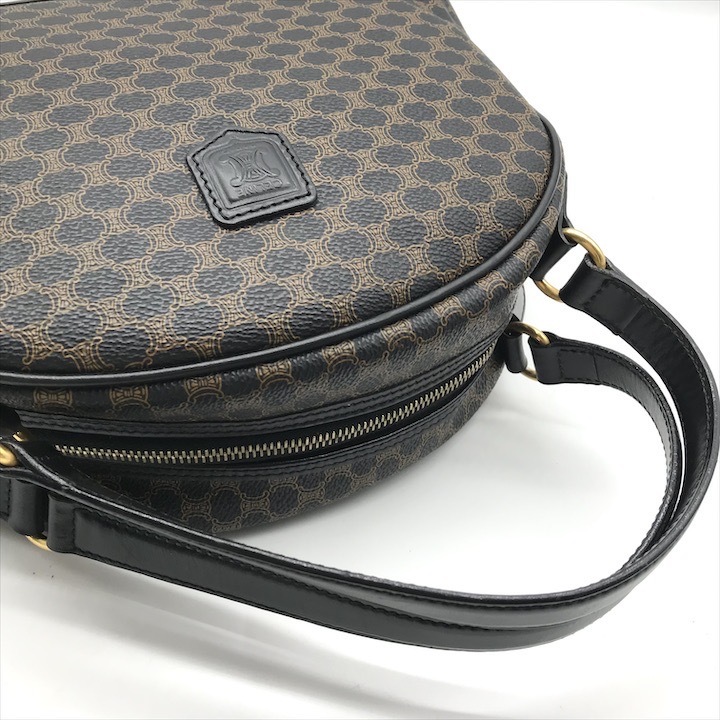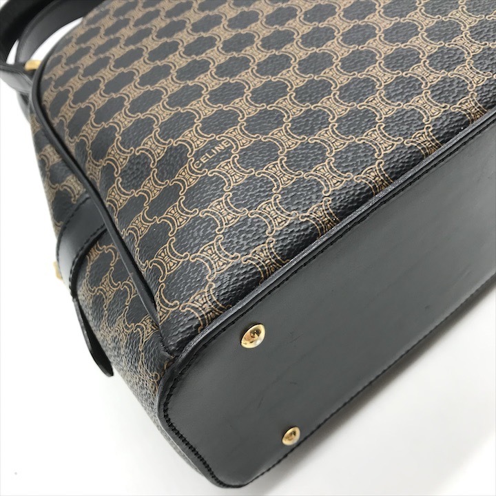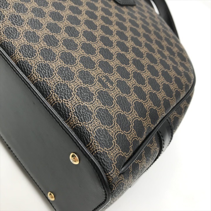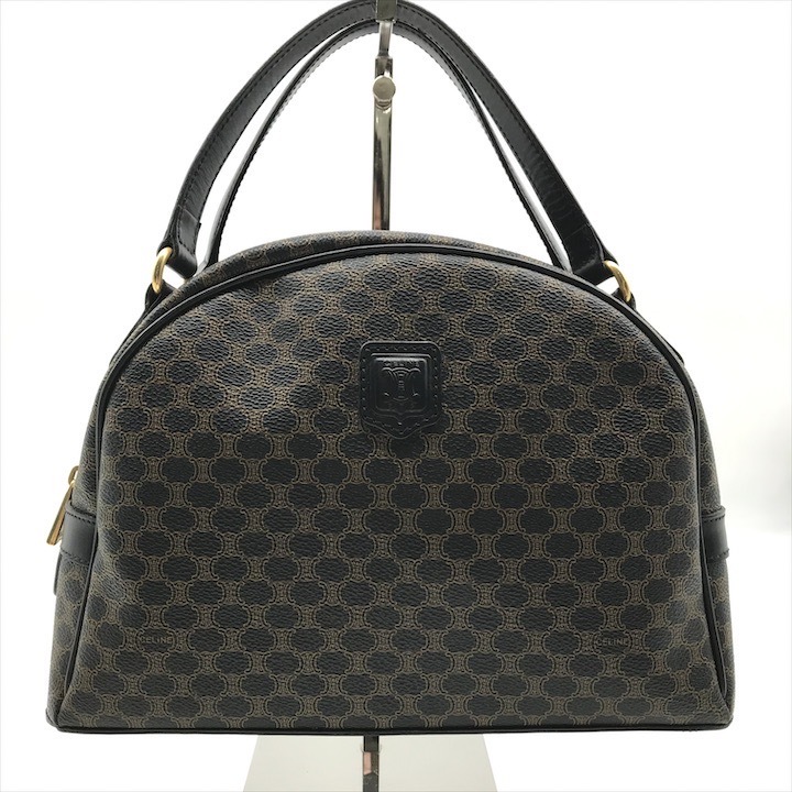 良品 CELINE セリーヌ ブラック マカダム ハンド ボストン バッグ ブラウン レディース PVC レザー k2573 | |||