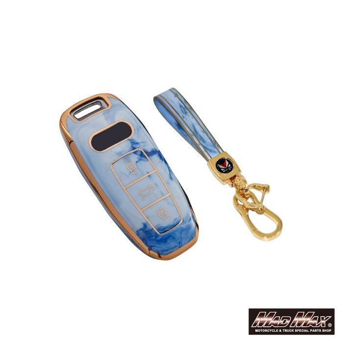 アウディ専用 大理石調 TYPE D TPUスマートキーケース ブルー。