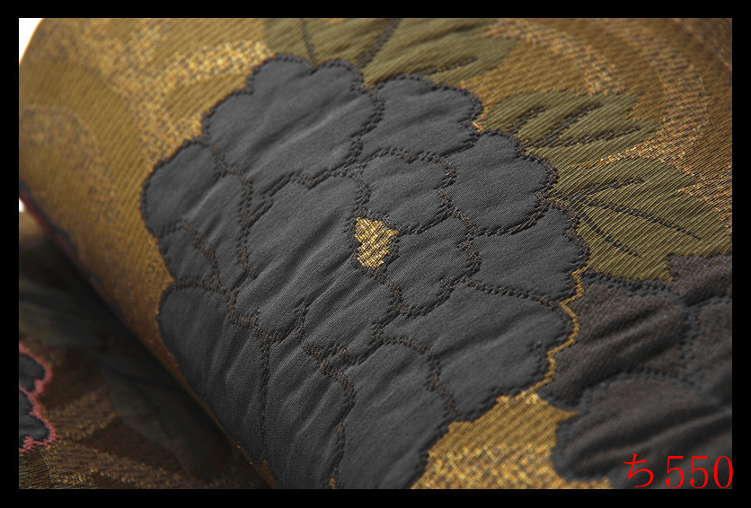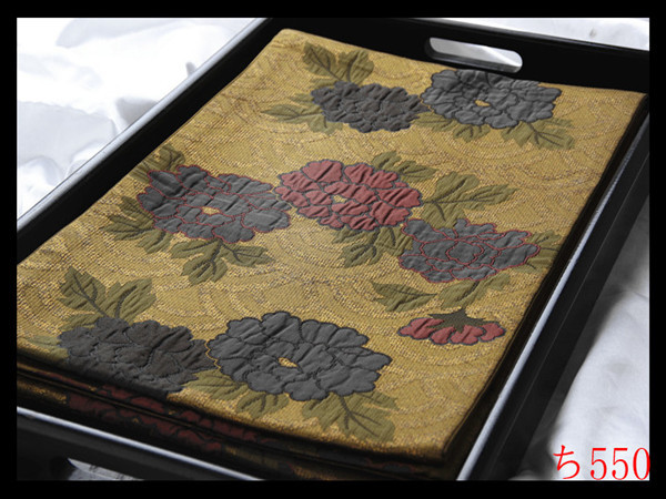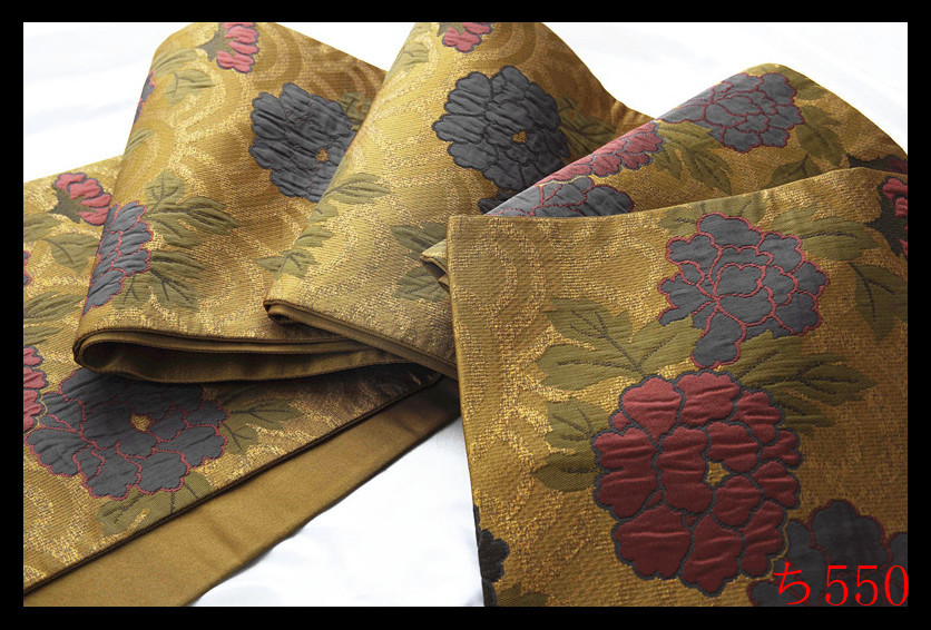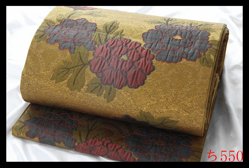 A【ち550】西陣美品 牡丹文 芥子色地  正絹六通高級美術袋帯 検★着物名古屋帯和装小物帯締め
