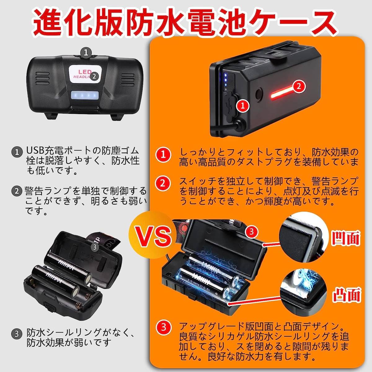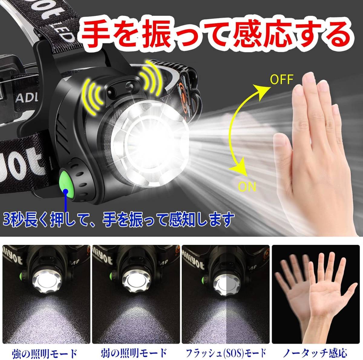 USBType-C充電式 LEDヘッドライト 超高輝度 500M遠距離照射 人感センサー 電池残量指示 リチウムイオン電池 2本付 夜釣 防災 アウトドア