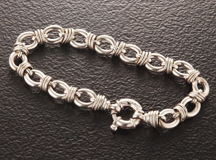 | コメント | [[全ての商品に品質保証カードが付きますのでご安心ください]]イタリー製のブレスレットです。パーツが大きいので、キラキラ感も上々です。良いコンディションで、キズや歪みなどは見られません。 |