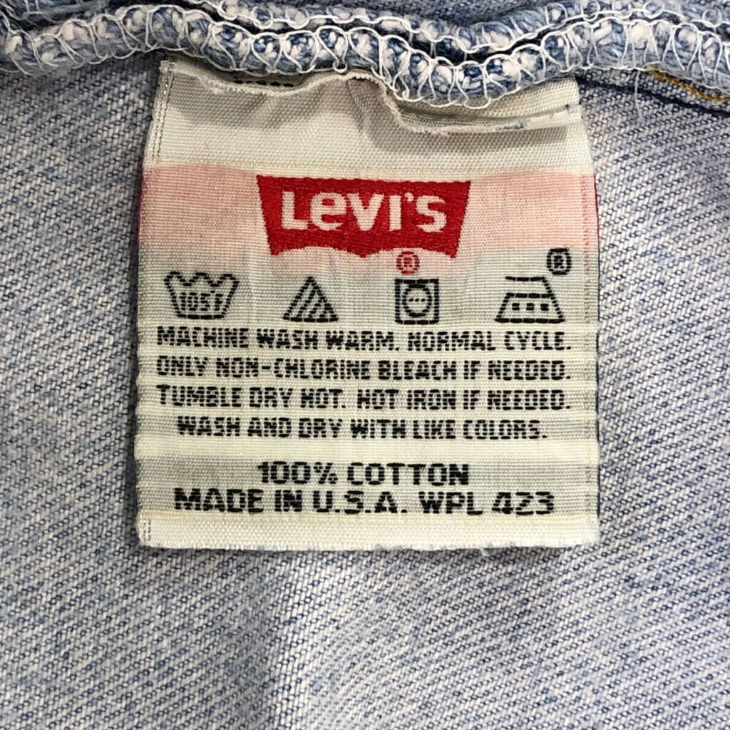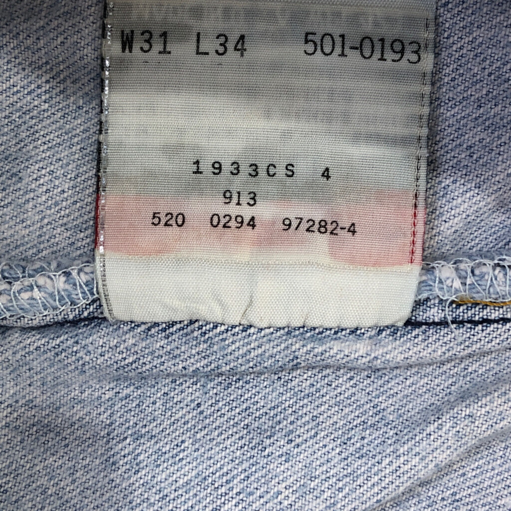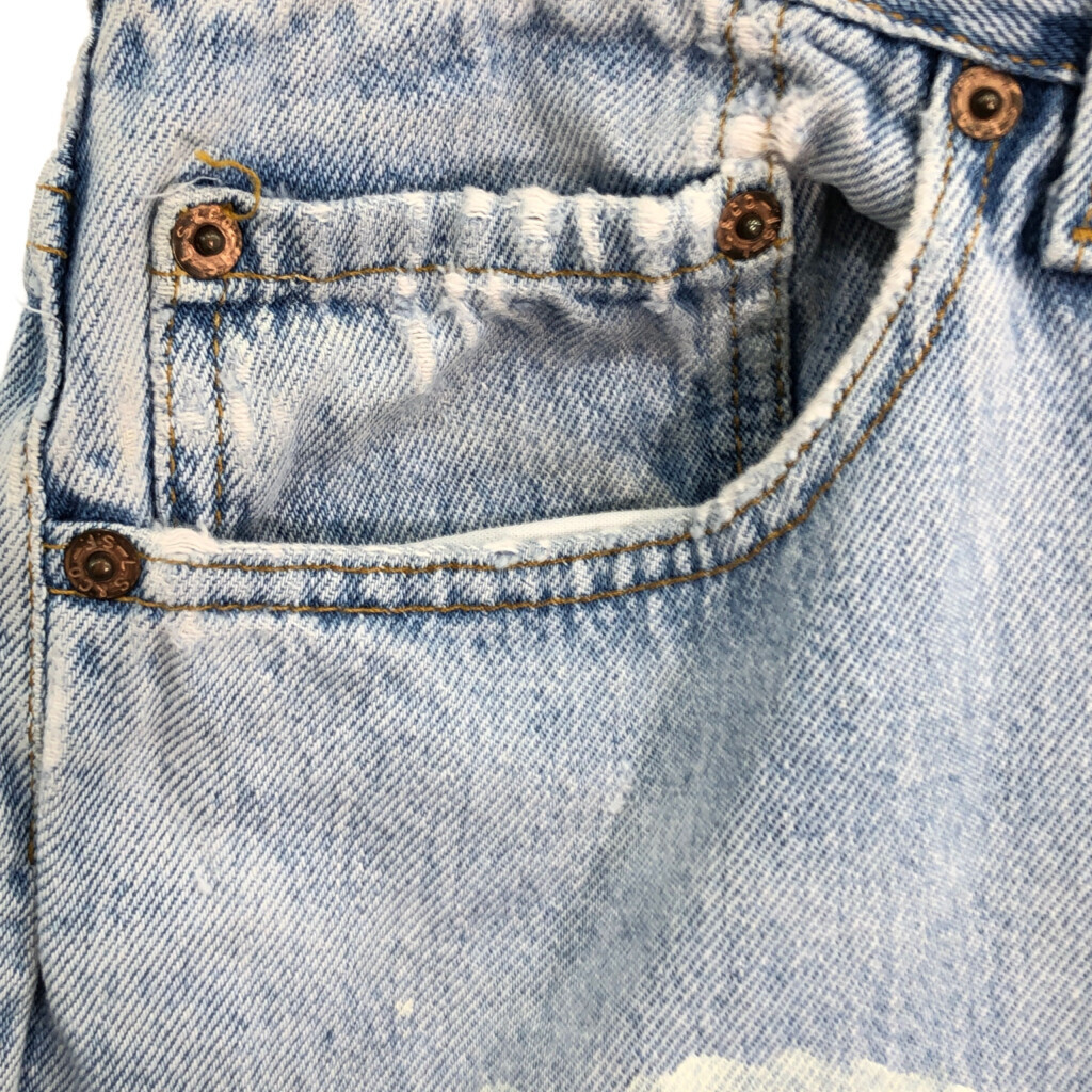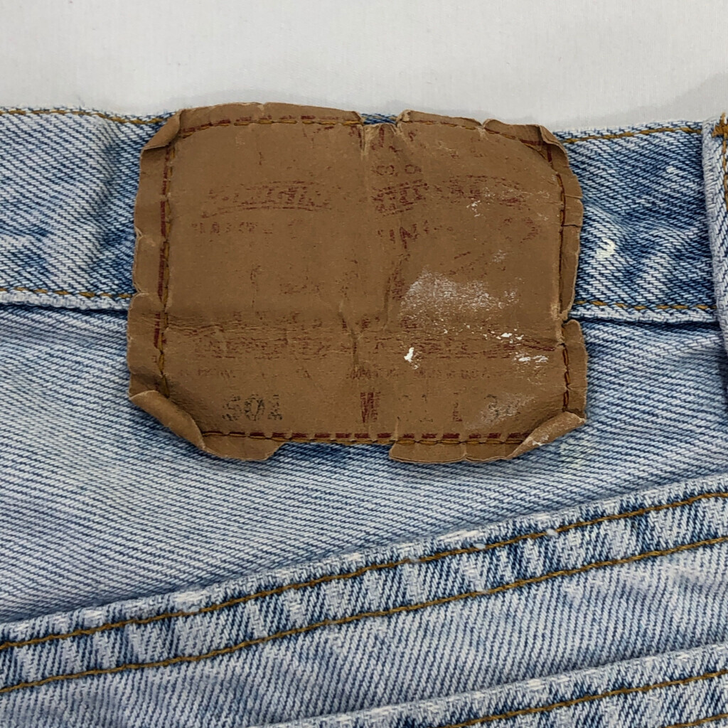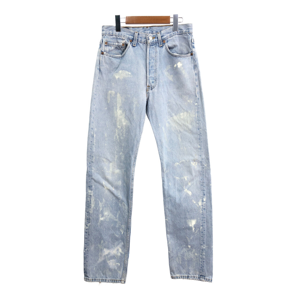 | [商品管理番号] R5358 [ブランド] Levi's/リーバイス [サイズ] W31 L34 [実寸サイズ] ウエスト:約72cm 股上:約28cm 股下:約81cm わたり幅:約29cm 裾幅:約19cm [主な素材] 表地 : コットン [色] ライトブルー [仕様] 生産国 : USA製 90年代 501 [状態] 汚れ:ヒップ、もも キズ:裾 特記事項: 全面ペンキ汚れ | |||