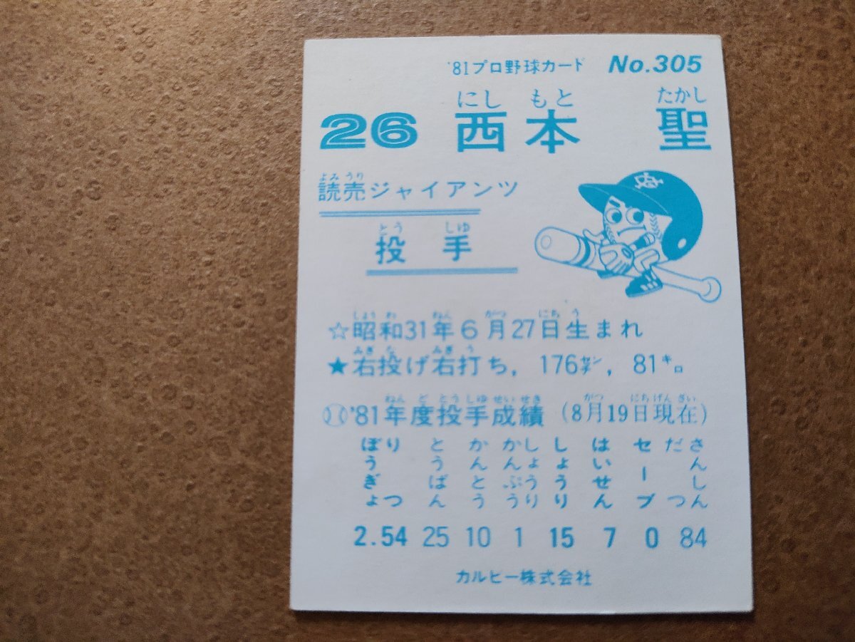 西本聖 読売ジャイアンツ '81プロ野球カード カルビー