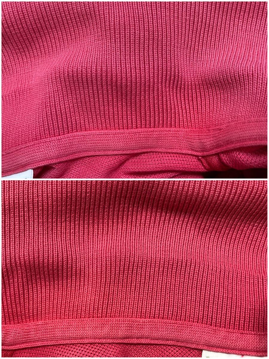 分かりづらいですが、襟周りから胸にかけて色落ちあります。