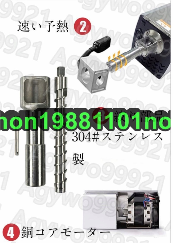 ●商品未使用 ★状態:新品未使用 【モーター】:200W銅コアモーターを使って、固くて耐久性があり、2-3㎏/hの搾油速度、一日連続搾油できる 【適用】:ピーナッツの種、大豆、杏仁、カボチャの種、白ゴマ、黒ゴマ、菜種、シソの種、ヒマワリの種、胡麻の種、山茶の種、亜麻の種、トウゴマの種子、黒大豆など30種以上の材料に搾油できる 【材質】:食品レベル304#ステンレス製絞り部品、熱処理、耐摩耗処理、防腐処理を経て、その使用寿命を大きく延長させる 【油の生産量】:45%-50% 【特徴】:操作簡単、予熱が速い、冷却ファンを使用すると、放熱性が良好 サイズ:460㎜*230㎜*260㎜ 色:銀色 搾油速度:2-3㎏/h パワー:350W 加熱パワー:150W 材質:304#ステンレス 電圧:110V