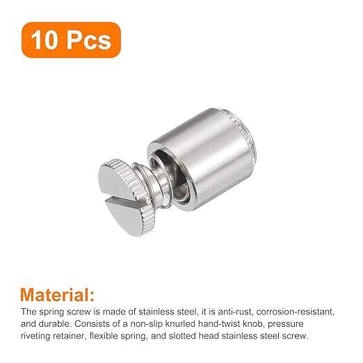 バネネジはステンレス製で、防錆、耐腐食、耐久性に優れています。滑り止めの刻み付きハンドツイスト ノブ、圧力リベット リテーナー、フレキシブル スプリング、スロット付きヘッド ステンレス スチール スクリューで構成されています。