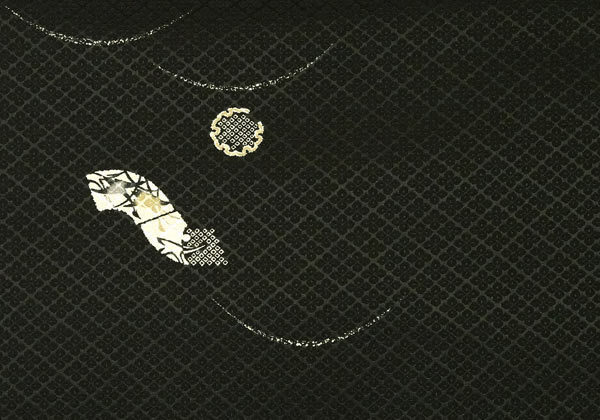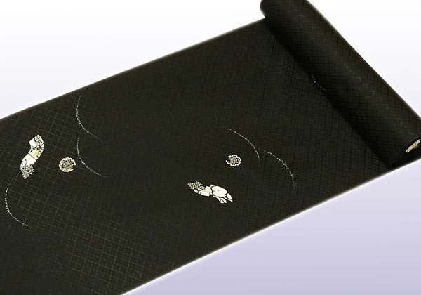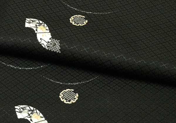 京有栖☆高級洗えるポリ小紋反物☆黒色系☆雪輪・扇面模様☆P-72